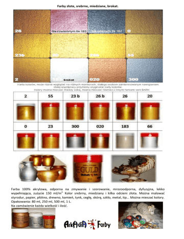 Farby złote, srebrne, miedziane, brokat. Farba 100