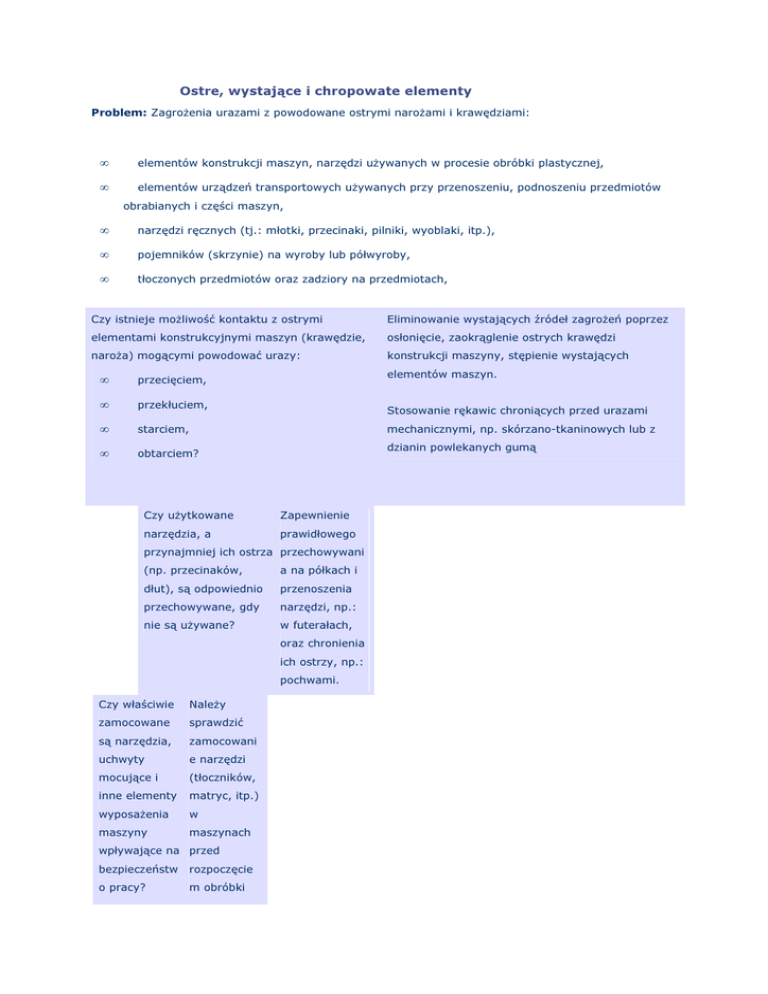 Ostre, wystające i chropowate elementy - rcku