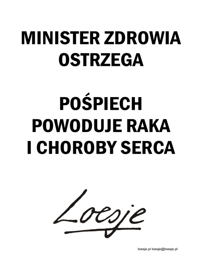 MINISTER ZDROWIA OSTRZEGA POŚPIECH POWODUJE RAKA I CHOROBY SERCA loesje.pl [email protected]