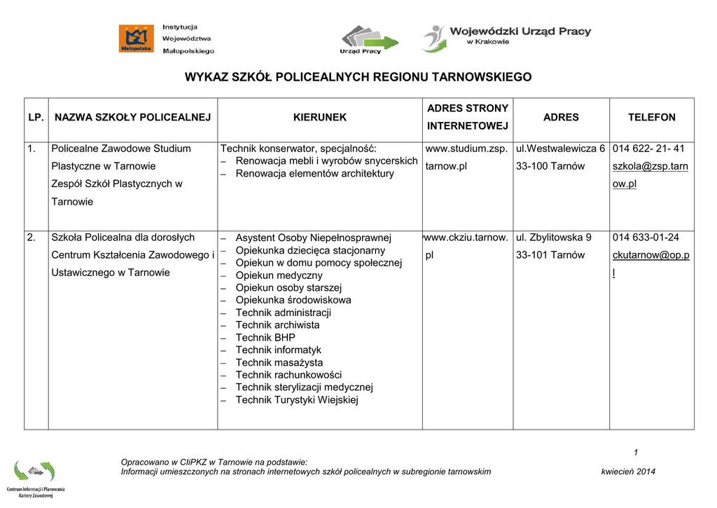 Wykaz szkół policealnych regionu tarnowskiego