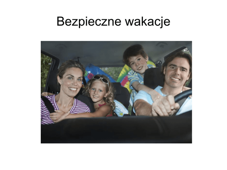 Bezpieczne wakacje Bezpieczeństwo nad wodą Zawsze wchodź do wody z drugą osobą lub najlepiej z grupką. Bezpieczeństwo nad wodą Szukając ochłody, nigdy nie wchodzimy do zimnej wody! Zetknięcie rozgrzanego ciała z chłodną wodą może spowodować szok termiczny, a wtedy zamiast uroków plażowania będziemy podziwiać mało ciekawe widoki najbliższego szpitala. Bezpieczeństwo nad wodą Kąpać się, pływać i rozrabiać w wodzie można wyłącznie w miejscach dozwolonych. Najlepiej pod okiem ratownika. Nie wchodzimy do wody w pobliżu mostów, portów i przystani. Bezpieczeństwo w górach Bezpieczeństwo w górach Wychodząc w góry, w miejscu pobytu zawsze zostawiamy wiadomość o trasie wycieczki i planowanej godzinie powrotu. Bezpieczeństwo w górach Na wędrówkę w góry wychodź wczesnym rankiem. Pogoda, jeśli ma się zepsuć, najpewniej zrobi to wczesnym popołudniem. Bezpieczeństwo w górach Zabieramy czapkę i rękawiczki, szalik, zapasowe skarpety, koszulę i płaszcz przeciwdeszczowy. Nie zapominamy o podręcznej apteczce, latarce i zapałkach. Bezpieczne wakacje Wykonała Marta Kuźnik