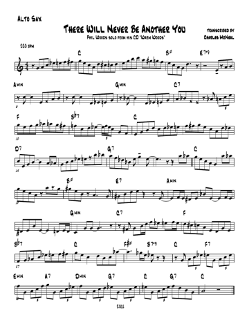 Alto Sax There Will Never Be Another You transcribed by Charles McNeal Phil Woods solo from his CD "Warm Woods" 220 bpm ø B E7 9 œ œ œ #œ nœ œ œ bœ nœ œ #œ œ œ œ œ #œ nœ œ œ œ 4 œ œ œ œ œ. ‰ Ó ‰ œ ‰ œ &4 œœ œk œ C + j œœ œ œ ‰ ‰œ œ œ ‰ b œ œ b œ ‰ œ ¿ ¿ bœ nœ J J œ¿ œ œ bœ nœ œ J œ bœ nœ œ 6 3 b F B 7 C œ œ œ œ b œ n œ œ # œ n œ œ b œ œœœ œœ œ # œ b œ n œ œ œ œ œ œ œ œ œ œ bœ œ œ œ œ A min G min C7 3 10 G C œ b œ œ œ b œ œ bœ œ œœ œ bœ œ œ œ. œ œ œ œ œ bœ œ œ œ bœ nœ ‰ œœœ ‰Œ bœ J J œ D7 7 14 Bø œ ‰ œ #œ œ œœ œœ‰ œ ‰ œ . œj # œ œ œ œ Œ ‰ œj œ œ œ œ b œ œ œ œ œ #œ E7 A min 19 œ bœ nœ œ œ œ #œ nœ œ j œ ‰ ‰ œœ œ œ œ #œ œ #œ œ œ œ nœ œ œ œ œ œ œ. 23 b # B 7 C C F7 F ø B 7+ 9 . bœ nœ œ #œ œ œ œ œ œ œ bœ œ bœ œ bœ ‰ Œ ‰ j œ bœ nœ œ œ œ œ b œ œ J œ œ œ œ C7 G min œ F 27 E min œ 31 3 œ œ œœ 3 œ A7 D min G7 C G7 3 C bœ œ œ bœ œ œ œ nœ œ œ œ œ œ œ œ œœ œ œœ œ œ œ ˙ 3 3 3 2011 3 Ó