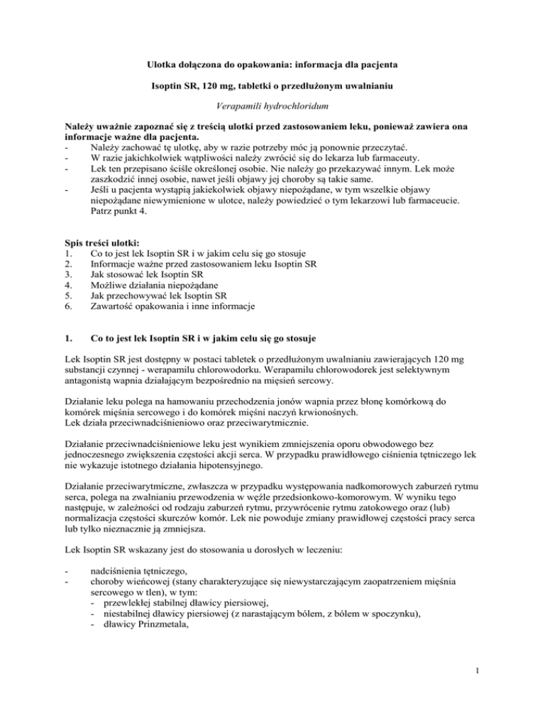 informacja dla pacjenta Isoptin SR, 120 mg, tabletki o przedłużonym