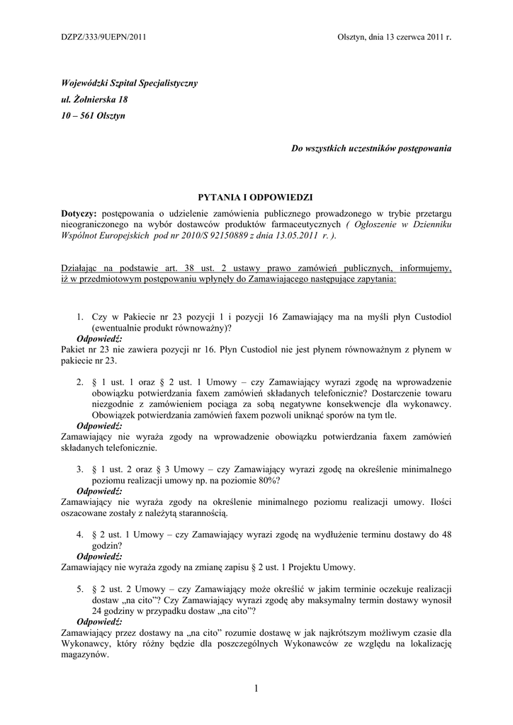 561 Olsztyn Do wszystkich uczestników postępowania PYTANIA I OD
