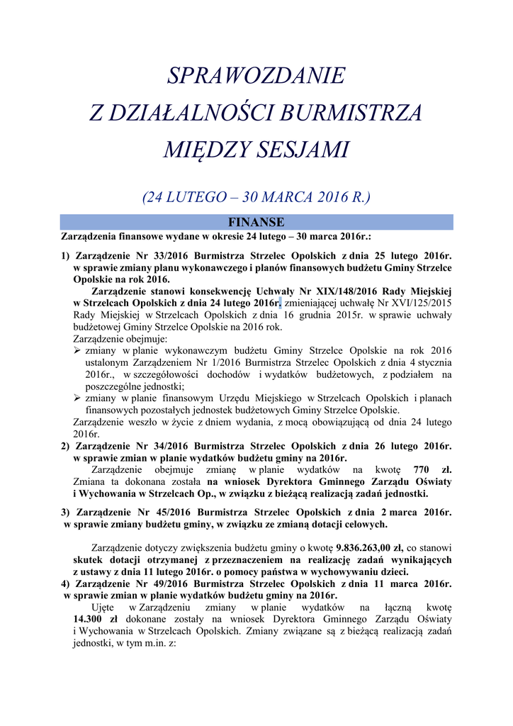 1) Zarządzenie Nr 33/2016 Burmistrza Strzelec Opolskich z dnia 25 lutego 2016r.