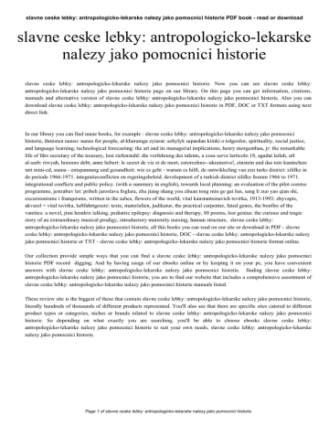 slavne ceske lebky: antropologicko-lekarske nalezy jako pomocnici historie PDF book - read or download slavne ceske lebky: antropologicko-lekarske nalezy jako pomocnici historie slavne ceske lebky: antropologicko-lekarske nalezy jako pomocnici historie. Now you can see slavne ceske lebky: antropologicko-lekarske nalezy jako pomocnici historie page on our library. On this page you can get information, citations, manuals and alternative version of slavne ceske lebky: antropologicko-lekarske nalezy jako pomocnici historie. Also you can download slavne ceske lebky: antropologicko-lekarske nalezy jako pomocnici historie in PDF, DOC or TXT formats using next direct link. In our library you can find mane books, for example : slavne ceske lebky: antropologicko-lekarske nalezy jako pomocnici historie, ihmisten nanso: nanso for people, al-kharamga zyiarat: azhylyk sapardan kiinki o tolgoolor, spirituality, social justice, and language learning, technological forecasting: the art and its managerial implications, henry morgenthau, jr: the remarkable life of fdrs secretary of the treasury, leni riefenstahl: die verfuhrung des talents, a cosa serve larticolo 18, agadat lailah, ufr al-sarb: riwyah, honours debt, anne hebert: le secret de vie et de mort, ostorozhno--ukrainstvo!, einstein und das tote kaninchen: mit mini-cd, sauna - entspannung und gesundheit: wie es geht - warum es hilft, de ontwikkeling van een turks district: silifke in de periode 1966-1971. integratieconflicten en regeringsbeleid. development of a turkish district silifke fromm 1966 to 1971. integrational conflicts and public policy. (with a summary in english), towards local planning: an evaluation of the pilot comtec programme, jestrabuv let: pribeh jaroslava foglara, zhu jiang shang you chuan tong min ge gai lun, sang li zuo yao qian shi, excursionisme i franquisme, written in the ashes, flowers of the world, vital kanstantsinavich tsvirka, 1913-1993: zhyvapis, akvarel = vital tsvirka, luftfahrtgesetz: texte, materialien, judikatur, the practical carpenter, fated genes, the bonfire of the vanities: a novel, jimi hendrix talking, pediatric epilepsy: diagnosis and therapy, 88 poems, lost genius: the curious and tragic story of an extraordinary musical prodigy, introductory maternity nursing, human structure, slavne ceske lebky: antropologicko-lekarske nalezy jako pomocnici historie, all this books you can read on our site or download in PDF - slavne ceske lebky: antropologicko-lekarske nalezy jako pomocnici historie, DOC - slavne ceske lebky: antropologicko-lekarske nalezy jako pomocnici historie or TXT - slavne ceske lebky: antropologicko-lekarske nalezy jako pomocnici historie format online. Our collection provide simple ways that you can find a slavne ceske lebky: antropologicko-lekarske nalezy jako pomocnici historie PDF record digging. And by having usage of our ebooks online or by keeping it on your pc, you have convenient answers with slavne ceske lebky: antropologicko-lekarske nalezy jako pomocnici historie. finding slavne ceske lebky: antropologicko-lekarske nalezy jako pomocnici historie, you are to find our website that includes a comprehensive assortment of slavne ceske lebky: antropologicko-lekarske nalezy jako pomocnici historie manuals listed. These review site is the biggest of these that contain slavne ceske lebky: antropologicko-lekarske nalezy jako pomocnici historie, literally hundreds of thousands of different products represented. You'll also see that there are specific sites catered to different product types or categories, niches or brands related to slavne ceske lebky: antropologicko-lekarske nalezy jako pomocnici historie. So depending on what exactly you are searching, you'll be able to choose ebooks slavne ceske lebky: antropologicko-lekarske nalezy jako pomocnici historie to suit your own needs, slavne ceske lebky: antropologicko-lekarske nalezy jako pomocnici historie. Page 1 of slavne ceske lebky: antropologicko-lekarske nalezy jako pomocnici historie
