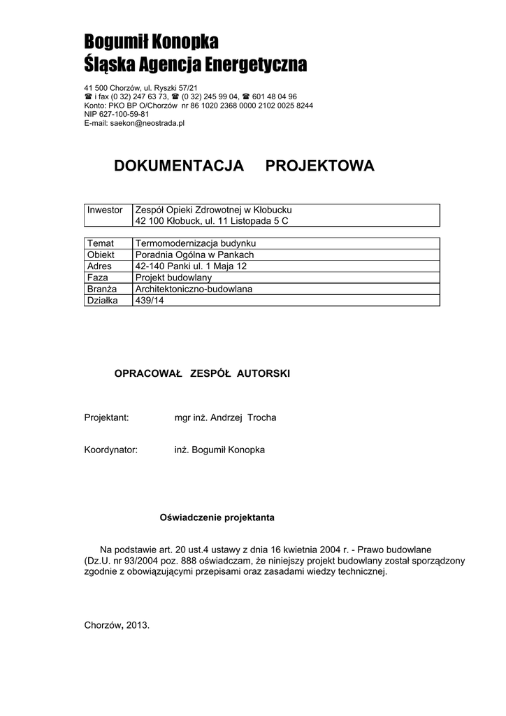 Projekt budowlany Panki