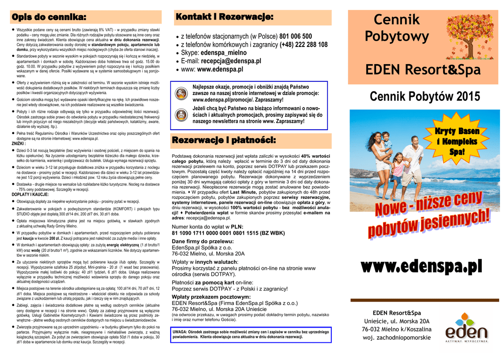 Cennik Pobytów 2015 - Eden Hotel Mielno SPA