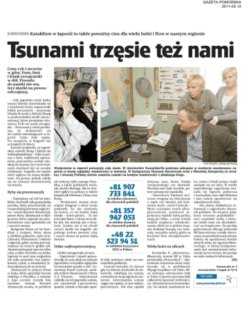 GAZETA POMORSKA 2011-03-12 KATASTROFA Kataklizm w Japonii to także poważny cios dla wielu ludzi i firm w naszym regionie Tsunami trzęsieteżnami Ceny ryb i owoców w górę. Euro, funt i frank szwajcarski w dół. Powodu do paniki nie ma, lecz skutki na pewno odczujemy. - Gdy japońska część kadry naszej fabryki dowiedziała się o trzęsieniu ziemi, zapanowało lekkie poruszenie - przyznaje Witalis Korecki z fabryki Sharp w podtoruńskiej strefie ekono micznej, która produkuje tele wizory LCD na rynek europej ski. - Pracownicy mieli proble my, by dodzwonić się do rodzin mieszkających w Ja ponii. Linie były zajęte. Na szczęście, w tragedii nie ucierpieli ich bliscy. Korecki podkreśla, że japoń skiej centrali Sharp i fabryk nie dotknął kataklizm: -Tylko w jed nej z nich, najbliższej epicen trum, pracownicy zostali ode słani do domów, by w tych trud nych chwilach być ze swoimi rodzinami. Tragedia nie będzie mieć wpływu na naszą działal ność. Na pewno jednak odbije się na sytuacji ekonomicznej na świecie. Ryby się przestraszyły - Największy od 140 lat kata klizm zachwiał całą gospodarką morską. Ryby przestraszyły się i ta produkcja jest teraz zagrożo na - uważa Ryszard Abramczyk, prezes firmy Abramczyk w Byd goszczy, która zajmuje się prze twórstwem oraz sprzedażą ryb i owoców morza. Bydgoska firma od lat han dluje z krajami, które słyną z wielkich połowów, czyli m.in. Chinami, Wietnamem i właśnie z Japonią, gdzie zresztą jest naj większa na świecie giełda ryb. Abramczyk kupuje tam nie tyłko ryby, a także krewetki czy kraby. Japonia to pod tym względem nie tylko potentat, lecz najcie kawszy rynek, a mieszkańcy je dzą najwięcej ryb na świecie. Abramczyk to jedyna firma w kraju, która sprzedaje łososia dzikiego z Pacyfiku, a właśnie z tego oceanu ruszyła fala tsunami. Jednak Ryszard Abramczyk uważa, że problem FOT. PAP/EPA, JAROSŁAW PRUSS Wydarzenia w Japonii poruszyły cały świat. W niemieckim Dusseldorfie podczas zakupów w markecie zszokowane Ja ponki (z lewej) oglądały wiadomości w telewizji. W Bydgoszczy Ryszard Abramczyk wraz z Nikolettą Sztupecką (w środ ku) i Urszulą Poliwką równie uważnie czekali na kolejne wiadomości z dalekiego kraju. nie dotyczy tylko samego Pacy fiku, a także pobliskich mórz, jak choćby Beringa. Ma to rów nież wpływ na połowy w takich krajach jak Wietnam, Chiny oraz Rosja. - Producenci muszą teraz zdążyć ściągnąć z mórz swoje jednostki, bo nie wiadomo do końca, co się będzie dalej działo - mówi prezes. - To nie jest takie łatwe i nieraz trwa kil ka dni, nie mówiąc już o kosz tach. Trudno mi w tej chwili ocenić skutki tej tragedii, ale jednego jestem pewien: ryby i owoce morza na pewno będą droższe. Dolar najbezpieczniejszy Giełda zareagowała od razu. - Zagrożenie i strach spowo dowały, że ceny akcji na rynkach japońskim i wszystkie azjatyckie momentalnie poszły w dół - ko mentuje Paweł Cymcyk, anali tyk rynków finansowych z firmy A-Z Finanse. - Natychmiast osłabiła się też japońska waluta, jen zanotował 3-procentowy spadek. Jednak w Europie spad- +81907 733 841 to telefon alarmowy dla obywateli polskich +81357 947 053 to telefon dyżurny dla obywateli polskich +48 22 523 94 51 to infolinia kryzysowa MSZ w Polsce ki były mniejsze, także na war szawskim parkiecie. Cymcyk twierdzi, że zawsze gdy na świecie dochodzi do ka tastrofy, osłabiają się waluty, a inwestorzy zwracają się ku do larowi. Amerykańska waluta ciągle ma opinię, że jest najbez pieczniejsza. Tak więc spadki dotyczą: euro, funta, franka szwajcarskiego czy złotówki. Wczoraj rano były wysokie, po tem sytuacja się uspokoiła. - Inwestorzy bardziej ner wowo reagują na informacje o ropie czy miedzi, niż trzę sieniu ziemi - mówi Cymcyk. Może ucierpieć rynek ubez pieczeniowy, ponieważ Ja pończycy bardzo lubią polisy, mają po kilka, a teraz trzeba będzie wypłacać odszkodo wania. Może to w jakimś stop niu dotknąć Europę czy Ame rykę, wszystko zależy, gdzie są korzenie firm ubezpieczenio wych. Wielu ludzi na ulicach Dominika E. JakimowiczBłaszczyk, konsul RP w Tokio przekazała „Pomorskiej": - Epi centrum trzęsienia ziemi znaj dowało się w prefekturze Miyagi na północ od Tokio. Sil ne wstrząsy odczuwalne były w Tokio. Czasowo zerwana była całkowicie łączność telefonicz na. Utrudniona jest komunika cja. Na skutek zamknięcia ko lei, metra i lokali tysiące ludzi znalazły się na ulicy. W strefie największego zagrożenia zna lazła się Japonia północna i wschodnia oraz cała Okinawa i tam należy spodziewać się największych strat. - Nie mamy dokładnych in formacji o zagrożeniu obywa teli polskich. Do tej pory (piąt kowe wczesne popołudnie red.) wszystkie osoby, z który mi udało nam się skontakto wać są bezpieczne. Na prośbę gubernatora Miyagi jednostki Sił Samoobrony zostały skiero wane na poszkodowane tereny. Należy się spodziewać bardzo dużych strat, ale Agencja Mete orologii, w której kompeten cjach jest zawiadowanie infor macją na ten temat, nie podaje na razie żadnych informacji. (DZ) Rozmowa dnia •• 3 „Pomorska Ekstra" o tragedii •• 12-13 www.pomorska.pl/forum <*n