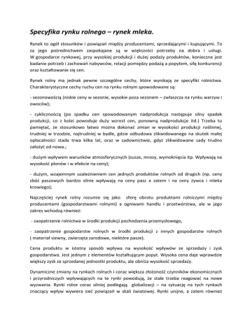 Specyfika rynku rolnego