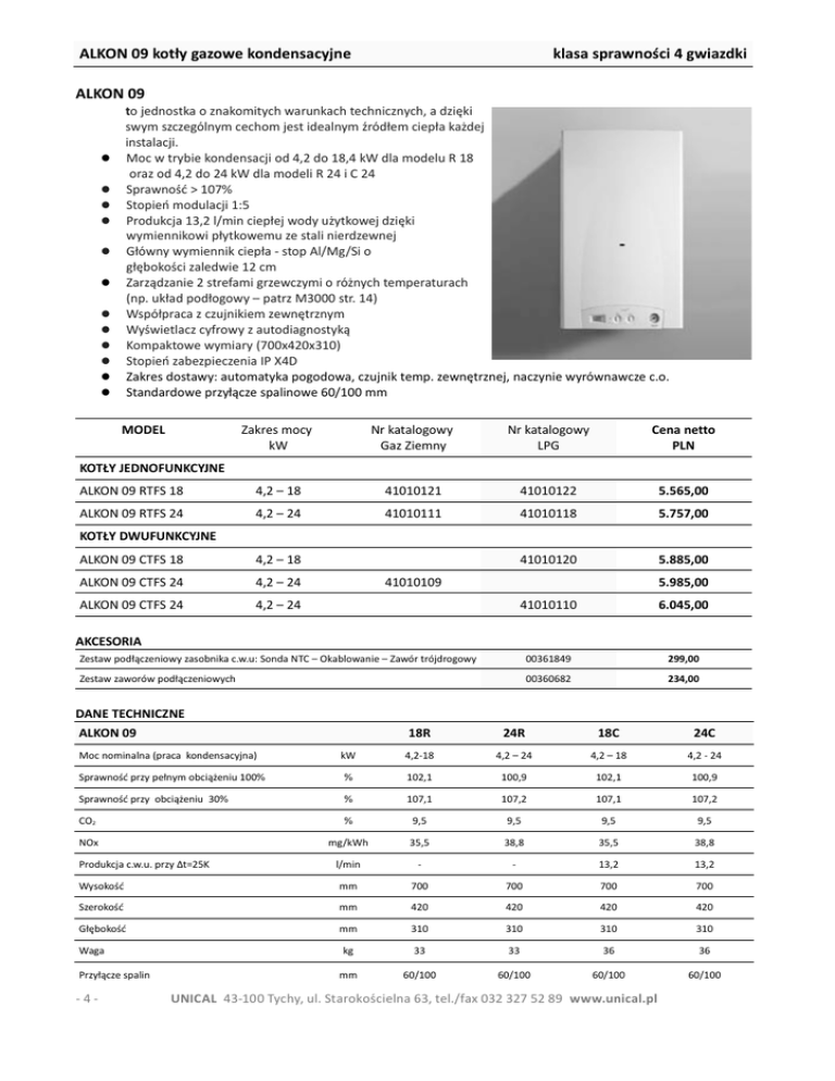 ALKON 09 kotły gazowe kondensacyjne klasa sprawności 4