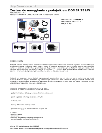 Zestaw do nawęglania z podajnikiem DOMER 25 kW