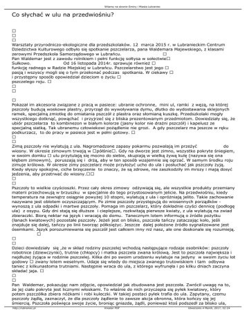 Witamy na stronie Gminy i Miasta Lubraniec Co słychać w ulu na przedwiośniu? Warsztaty przyrodniczo-ekologiczne dla przedszkolaków. 12 marca 2015 r. w Lubranieckim Centrum Dziedzictwa Kulturowego odbyło się spotkanie pszczelarza, pana Waldemara Majewskiego, z klasami zerowymi Przedszkola Samorządowego w Lubrańcu. Pan Waldemar jest z zawodu rolnikiem i pełni funkcję sołtysa w sołectwie Sułkowo. Od 16 listopada 2014r. sprawuje również funkcję radnego w Radzie Miejskiej w Lubrańcu. Pszczelarstwo jest jego pasją i wszyscy mogli się o tym przekonać podczas spotkania. W ciekawy i przystępny sposób opowiedział dzieciom o życiu pszczelego roju. Pokazał im akcesoria związane z pracą w pasiece: ubranie ochronne, mini ul, ramki z węzą, na której pszczoły budują woskowe plastry, przyrząd do wywoływania dymu, dłutko do wydostawania sklejonych ramek, specjalną zmiotkę do omiatania pszczół z plastra oraz słomianą kuszkę. Przedszkolaki mogły wszystkiego dotknąć, powąchać i przyjrzeć się z bliska prezentowanym przedmiotom. Dowiedziały się, że ubiór pszczelarza to kombinezon w białym kolorze (jasny kolor nie drażni pszczół) i kapelusz ze specjalną siatką. Tak ubranemu człowiekowi pożądlenie nie grozi. A gdy pszczelarz ma jeszcze w ręku podkurzacz, to do pracy w pasiece jest w pełni gotowy. Zimą pszczoły nie wylatują z ula. Nagromadzone zapasy pokarmu pozwalają im przeżyć do wiosny. W okresie zimowym trwają w półśnie. Gdy na dworze jest zimno, wszystko pokryte śniegiem, w swoim domku ulu przytulają się mocno do siebie, skupiają w wielką żywą kulę (nazywa się ona kłębem zimowym), poruszają się i drżą, aby w ten sposób wzajemnie się ogrzać. W samym środku roju zimuje królowa. W okresie zimy pszczelarz może przyłożyć ucho do ula i posłuchać jak pszczoły żyją. Kiedy słyszy spokojne, ciche brzęczenie to znaczy, że są zdrowe, nie zaszkodziły im mrozy i mają dosyć jedzenia, aby przetrwać do wiosny. Pszczoły to wielkie czyścioszki. Przez cały okres zimowy odżywiają się, ale wszystkie produkty przemiany materii przechowują w brzuszku w specjalnie do tego przystosowanym jelicie. Na przedwiośniu, kiedy temperatura na zewnątrz osiągnie powyżej 10 stopni, wylatują z ula i opróżniają jelito. Takie zachowanie nazywane jest oblotem oczyszczającym. Po zimie pszczoły przystępują do wiosennych porządków wynoszą z ula odpadki i martwe pszczoły. Pomaga im pszczelarz, który dokładnie czyści dennicę (podłogę ula) z osypu. Gdy dni stają się dłuższe i cieplejsze, rozkwitają pierwsze kwiaty, z ula wylatują na zwiad zbieraczki. Biorą nektar na język i wracają do domu. Tanecznym lotem informują o źródle pożytku (łanach kwiatowych) pozostałe pszczoły. Jeżeli jest on blisko, pszczoła tańczy zataczając koło, jeśli znajduje się dalej, tańczy po linii tworząc półksiężyc. Jeszcze dalej położone źródło sygnalizowane jest ósemkami. Język porozumiewania się pszczół jest całkiem inny niż nasz, ale one doskonale się rozumieją. Dzieci dowiedziały się ,że w skład rodziny pszczelej wchodzą następujące rodzaje osobników: pszczoły robotnice (dziewczynki), trutnie (chłopcy) i matka pszczela zwana królową. Jest to pszczoła największa i najdłużej żyjąca w rodzinie pszczelej. Kilka dni po swoim urodzeniu wylatuje na jedyny w swoim życiu lot godowy zwany lotem weselnym. Udaje się wtedy do miejsca zwanego trutowiskiem i tam odbywa taniec z kilkunastoma trutniami. Następnie wraca do ula, z którego wyfrunęła i po kilku dniach zaczyna składać jaja. Pan Waldemar, pokazując nam zdjęcie, opowiedział jak zbudowana jest pszczoła. Zwrócił uwagę na to, że jej ciało pokryte jest licznymi włoskami. To właśnie do nich przyczepia się pyłek kwiatowy, który potem pszczółka zbiera nóżkami i robi kuleczki. W takiej postaci pyłek trafia do ula. Zapytany, czemu pszczoły żądlą, zaznaczył, że dla pszczoły żądlenie to zawsze akcja obronna, która kończy się jej śmiercią. Pszczoła poświęca swoje życie, broniąc gniazda, żądli, ponieważ ktoś podszedł za blisko ula, http://lubraniec.pl Kreator PDF Utworzono 4 March, 2017, 02:24 Witamy na stronie Gminy i Miasta Lubraniec zdenerwował ją lub przygniótł. Jeżeli dziecko zostanie użądlone to powinno natychmiast poprosić dorosłego o pomoc, gdyż niektórzy są uczuleni na pszczeli jad. Pszczoły należą do niezwykle pożytecznych gatunków, ale są też zagrożone wyginięciem. Ich ochrona, dbałość o dobrostan i zwiększenie populacji to zadanie dla nas i kilku przyszłych pokoleń. Ważne jest, aby nie szkodzić pszczołom i wszelkie chemiczne opryski wykonywać o zmierzchu, po powrocie pszczół do ula. Spotkanie było wyjątkową lekcją przyrody - ciekawszą niż zwykła książkowa nauka. Na zakończenie pan Waldemar poczęstował wszystkich smakowitym miodem ze swojej pasieki, a przedszkolaki w podziękowaniu za interesującą pogadankę wręczyły mu dyplom, obdarowały własnoręcznie pokolorowanymi obrazkami z Pszczółką Mają i życzyły miłej pracy w pasiece. Może któreś z dzieci zostanie kiedyś bartnikiem? Anna Stawicka http://lubraniec.pl Kreator PDF Utworzono 4 March, 2017, 02:24