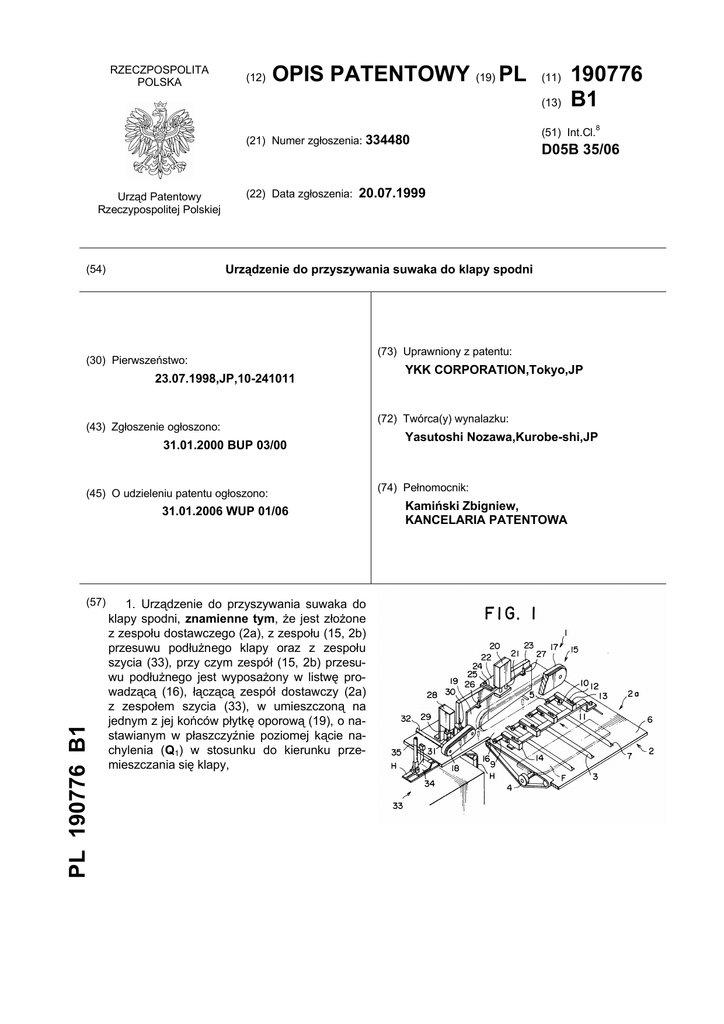 (12) OPIS PATENTOWY (19) PL (11) 190776 PL 190776 B1