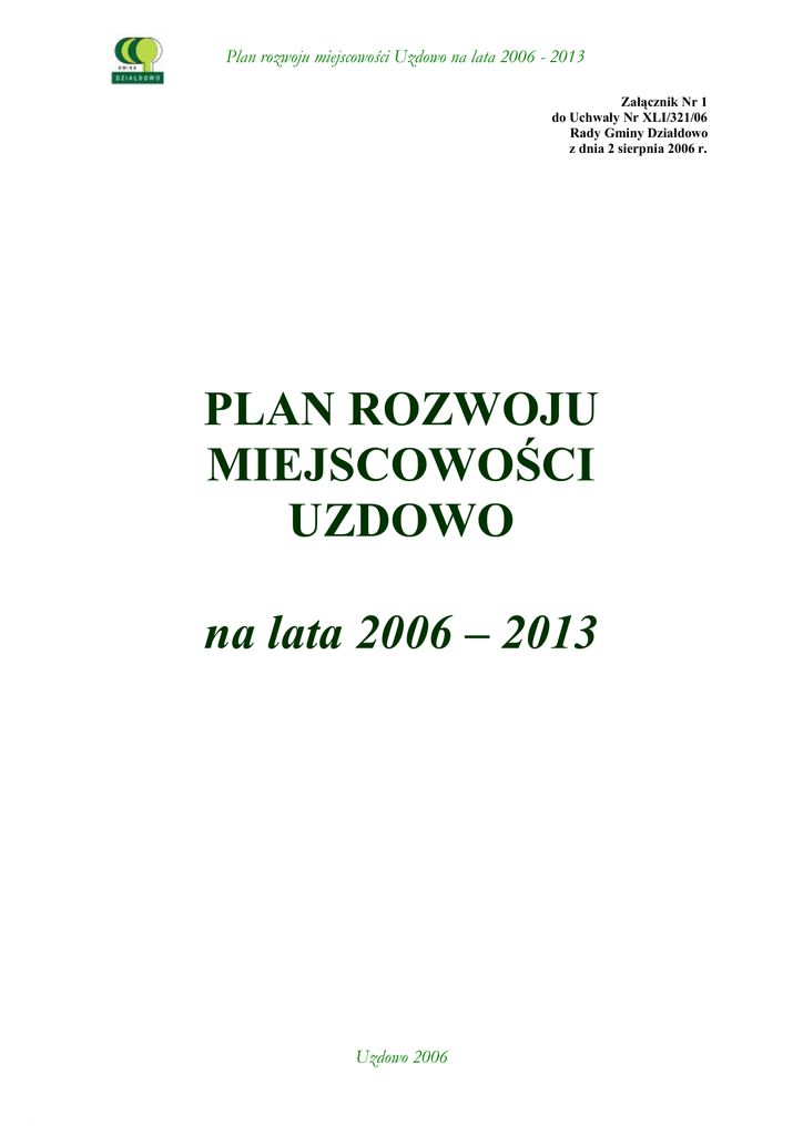 PLAN ROZWOJU MIEJSCOWOŚCI UZDOWO na lata 2006 – 2013