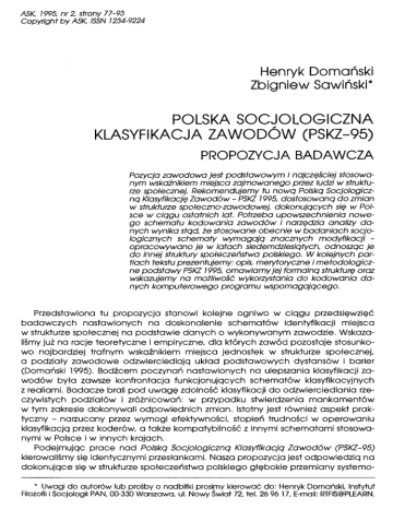THE POLISH SOCIOLOGICAL CLASSIFICATION OF OCCUPATIONS PSCO 1995