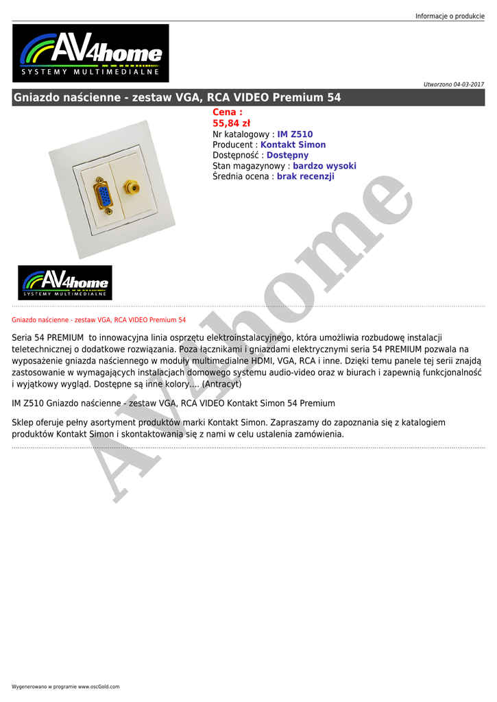 Informacje o produkcie Utworzono 04-03-2017 Gniazdo naścienne - zestaw VGA, RCA VIDEO Premium 54 Cena : 55,84 zł Gniazdo naścienne - zestaw VGA, RCA VIDEO Premium 54 om e Nr katalogowy : IM Z510 Producent : Kontakt Simon Dostępność : Dostępny Stan magazynowy : bardzo wysoki Średnia ocena : brak recenzji 4h Seria 54 PREMIUM to innowacyjna linia osprzętu elektroinstalacyjnego, która umożliwia rozbudowę instalacji teletechnicznej o dodatkowe rozwiązania. Poza łącznikami i gniazdami elektrycznymi seria 54 PREMIUM pozwala na wyposażenie gniazda naściennego w moduły multimedialne HDMI, VGA, RCA i inne. Dzięki temu panele tej serii znajdą zastosowanie w wymagających instalacjach domowego systemu audio-video oraz w biurach i zapewnią funkcjonalność i wyjątkowy wygląd. Dostępne są inne kolory.... (Antracyt) AV IM Z510 Gniazdo naścienne - zestaw VGA, RCA VIDEO Kontakt Simon 54 Premium Sklep oferuje pełny asortyment produktów marki Kontakt Simon. Zapraszamy do zapoznania się z katalogiem produktów Kontakt Simon i skontaktowania się z nami w celu ustalenia zamówienia. Wygenerowano w programie www.oscGold.com