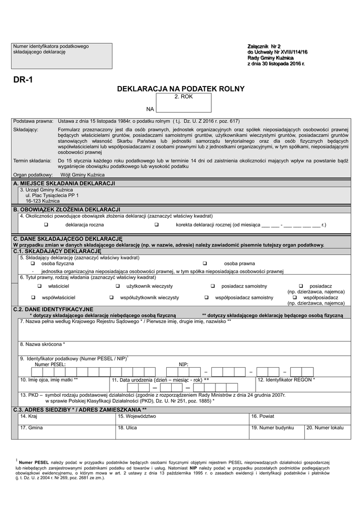 DR-1 Deklaracja na podatek rolny