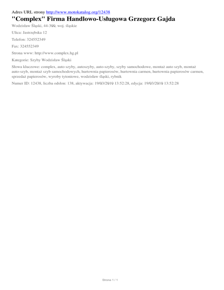 "Complex" Firma Handlowo-Uslugowa Grzegorz Gajda, Wodzislaw