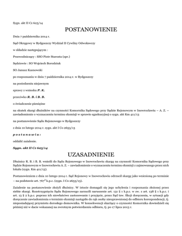 postanowienie uzasadnienie - Sąd Okręgowy w Bydgoszczy