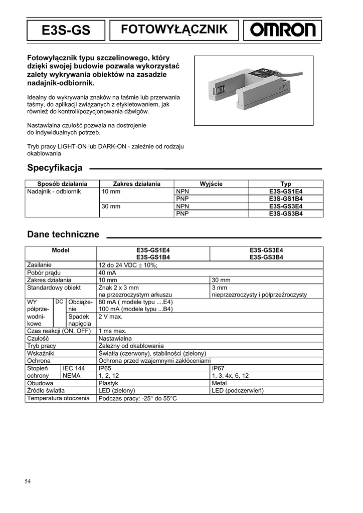Page 1 FOTOWY CZNIK 54 Fotowyłącznik typu szczelinowego, który