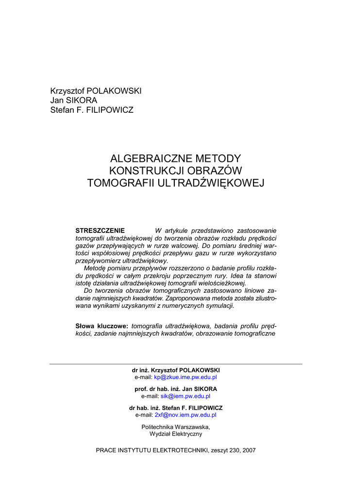 algebraiczne metody konstrukcji obrazów tomografii ultradźwiękowej