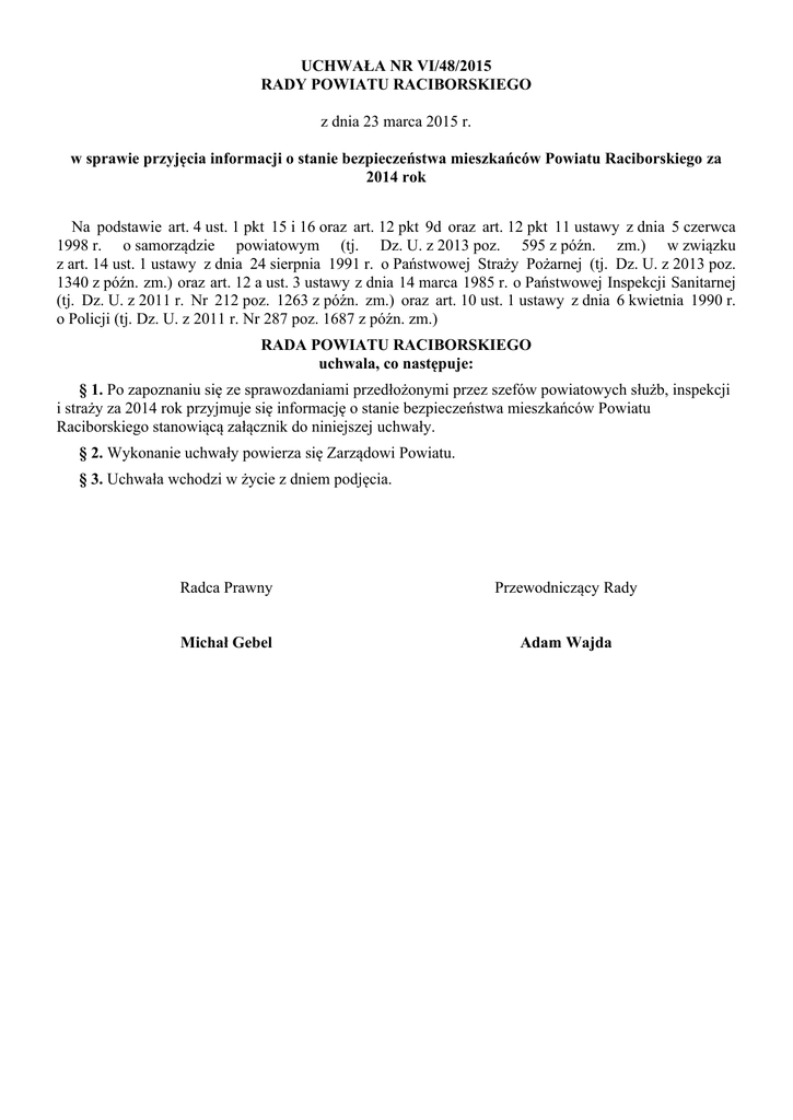 Uchwala Nr VI/48/2015 z dnia 23 marca 2015 r.