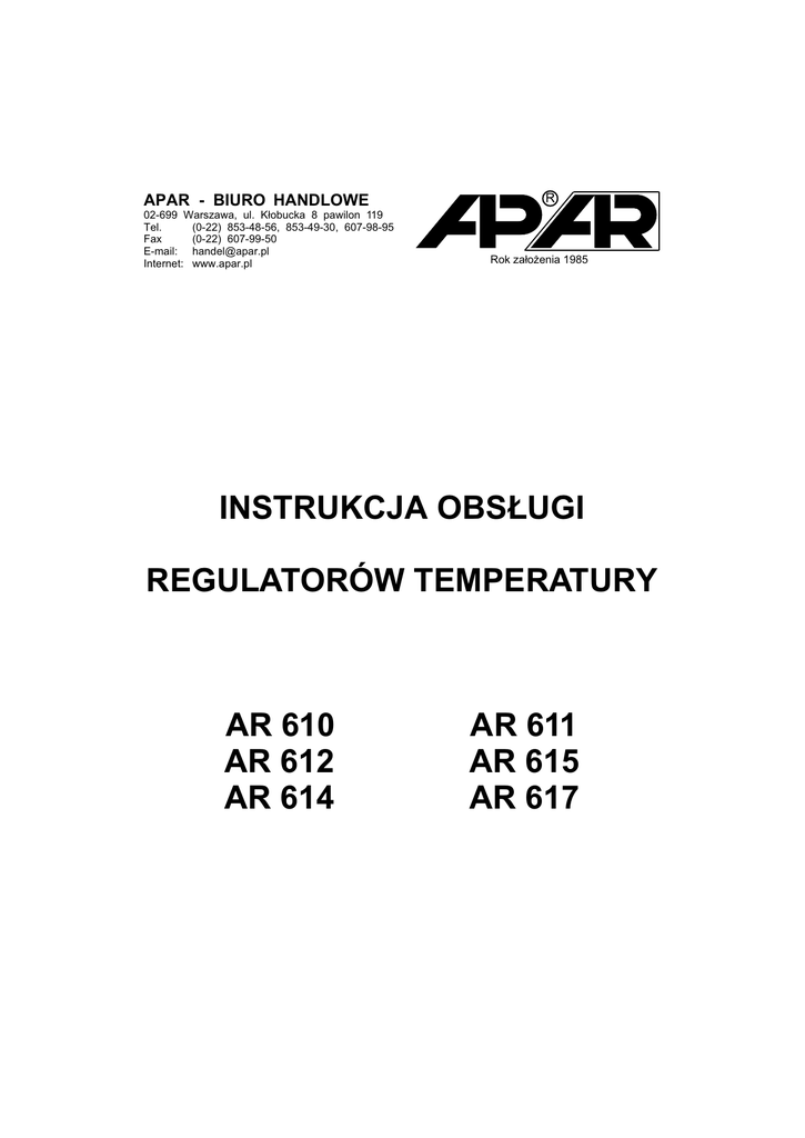 instrukcja obs£ugi regulatorów temperatury ar 610 ar 611 ar 612 ar