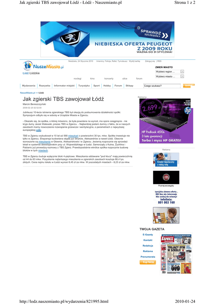 Jak zgierski TBS zawojował Łódź - Łódź - Naszemiasto.pl Niedziela, 24 Stycznia 2010 Strona 1 z 2 Imieniny: Felicja, Rafał, Tymoteusz Wyślij kartkę Zaloguj się | RSS ZMIEŃ MIASTO Wybierz region ... Łódź Łódzkie noclegi Wydarzenia Rozrywka Informator miejski Turystyka kino Sport koncerty Hobby ulice Forum Sklepy Wybierz miasto ... forum Czego szukasz? NaszeMiasto.pl >> Łódź Jak zgierski TBS zawojował Łódź Reklama Marcin Bereszczyński 2008-02-25 02:52:00 Jubileusz 10-lecia istnienia zgierskiego TBS był okazją do podsumowania działalności spółki. Sympozjum odbyło się w sobotę w Urzędzie Miasta w Zgierzu. - Okazało się, że spółka, o której mówiono, że była powołana na wyrost, ma spore osiągnięcia - nie kryje dumy Jacek Walewski, prezes TBS w Zgierzu. - Najbardziej jestem dumny z faktu, że w naszych zasobach mamy nowoczesne rozwiązania grzewcze i wentylacyjne, o parametrach z najwyższej europejskiej półki. TBS w Zgierzu wybudował w 10 lat aż 568 mieszkań o powierzchni 30 tys. mkw. Spółka inwestuje nie tylko w Zgierzu. Ekspansja budowlana objęła już Stryków, Aleksandrów a nawet Łódź. Obecnie wznoszone są mieszkania w Głownie, Aleksandrowie i w Zgierzu. Jesienią rozpocznie się sprzedaż lokali w systemie deweloperskim przy ul. Wojewódzkiego w Łodzi. Samorządy z Kutna, Żychlina i Pabianic już prowadzą rozmowy z TBS Zgierz. Prawdopodobnie wkrótce spółka rozpocznie budowę bloków w tych miastach. Reklama TBS w Zgierzu buduje wyłącznie bloki 4-piętrowe. Mieszkania oddawane "pod klucz" mają powierzchnię od 44 do 63 mkw. Pozyskanie najtańszego mieszkania w zgierskich zasobach kosztuje 66,4 tys. złotych. Cena najmu lokalu w Łodzi wynosi 8,45 zł za mkw. W pozostałych miastach - 8,23 zł za mkw. TWOJA GAZETA E-Gazety Kontakt Redakcja Reklama Prenumerata http://lodz.naszemiasto.pl/wydarzenia/821995.html 2010-01-24 Jak zgierski TBS zawojował Łódź - Łódź - Naszemiasto.pl Strona 2 z 2 ZOBACZ KONIECZNIE Polska Dziennik Łódzki - e-gazeta Zamów prenumeratę Polecamy Express Ilustrowany - e-gazeta Najpopularniejsza gazeta Łodzi w PDF Gorące oferty ING OFE Sam wybierz swoją ścieżkę. Wybierz ING OFE! Świerszczyk wychowawczy niezbędnik dla mamy i taty! Sprawdź! Kredyt hipoteczny z niską ratą! Sprawdź! Zakupy Usługi Do 30% tańsze ubezpieczenie OC i Pakiety! Porównywarka kredytów, lokat i ubezpieczeń. Sprawdź! Ubezpieczenie OC od 260 zł/rok. Oblicz składkę! Dobra Pożyczka gotówkowa dla Ciebie i Twoich Bliskich od 2,99% rocznie! Ogłoszenia Pasaż zakupowy Prezenty na każdą okazję. Zamów! Wyprzedaż Rocznika 2009! Dowiedz się więcej >> Motoryzacja NOWOŚĆ! Pierwsze konto dla kobiet! Nieruchomości Praca Turystyka Ogłoszenia drobne Sklepy internetowe O NaszymMieście Marketing Reklama Kontakt Praca Prywatność Regulamin Mapa serwisu © 2000-2010 Polskapresse Sp. z o.o. ® Na górę strony Serwisy branżowe: Gratka.pl Alegratka.pl Praca.gratka.pl Moto.Gratka.pl Turystyka.Gratka.pl Serwisy partnerskie: http://lodz.naszemiasto.pl/wydarzenia/821995.html Wiadomosci24.pl PolskaTimes.pl Motofakty.pl Polskapresse.pl Telemagazyn.pl 2010-01-24