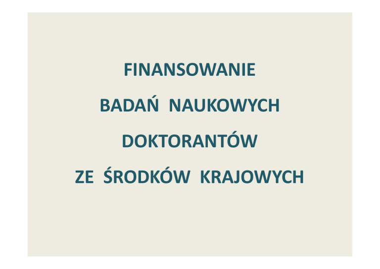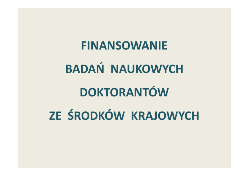 Finansowanie badań naukowych doktoratów ze środków krajowych