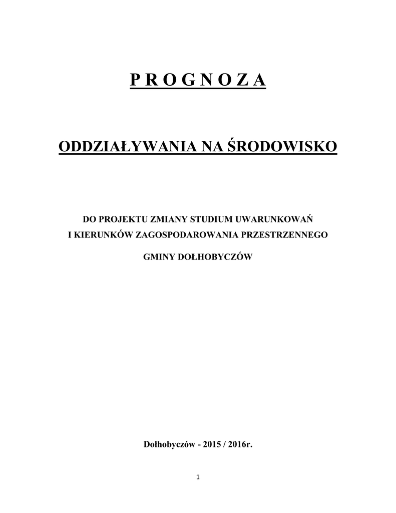 PROGNOZA ODDZIAŁYWANIA NA ŚRODOWISKO DO PROJEKTU ZMIANY STUDIUM UWARUNKOWAŃ I KIERUNKÓW ZAGOSPODAROWANIA PRZESTRZENNEGO GMINY DOŁHOBYCZÓW Dołhobyczów - 2015 / 2016r. 1 1. 1.1 WPROWADZENIE CEL, ZAKRES PRACY, POWIĄZANIA Z INNYMI DOKUMENTAMI Niniejsza prognoza oddziaływania na środowisko projektu zmiany studium uwarunkowań kierunków zagospodarowania przestrzennego gminy Dołhobyczów została sporządzona w oparciu o wymogi wynikające z przepisu art. 51 ust. 1 ustawy z dnia 3 października 2008r. o udostępnianiu informacji o środowisku i jego ochronie, udziale społeczeństwa w ochronie środowiska oraz o ocenach oddziaływania na środowisko (Dz. U. z 2008r. Nr 199, poz. 1227). Podstawowym jej celem jest wykazanie, jak określone w zmianie studium kierunki zagospodarowania przestrzennego wpłyną na środowisko oraz w jakim stopniu naruszą zasady prawidłowej gospodarki zasobami naturalnymi. Zgodnie z wyżej wymienionym artykułem sporządzana prognoza: a) zawiera: ustalenia i główne cele projektu studium uwarunkowań i kierunków zagospodarowania przestrzennego gminy Tomaszów Lubelski oraz jego powiązania z innymi dokumentami, informacje o metodach zastosowanych przy sporządzaniu prognozy, informacje na temat przewidywanych możliwości transgranicznego oddziaływania na środowisko, propozycje dotyczące przewidywanych metod analizy skutków realizacji postanowień projektowanego studium oraz częstotliwości jej przeprowadzania, streszczenie sporządzone w języku niespecjalistycznym, b) określa, analizuje i ocenia: istniejący stan środowiska, potencjalne zmiany stanu środowiska przy braku realizacji postanowień projektowanego dokumentu, przewidywane znaczące oddziaływania na środowisko przy realizacji postanowień projektowanego dokumentu, istniejące problemy ochrony środowiska istotne z punktu widzenia realizacji projektowanego dokumentu, cele ochrony środowiska ustanowione na szczeblu międzynarodowym, wspólnotowym i krajowym istotne z punktu widzenia projektowanego dokumentu oraz sposoby w jakich te cele zostały uwzględnione, c) przedstawia: rozwiązania mające na celu zapobieganie, ograniczanie lub kompensację przyrodniczą negatywnych oddziaływań na środowisko, możliwości rozwiązań alternatywnych w odniesieniu do obszaru Natura 2000. W toku prac nad projektem zmiany studium uwarunkowań i kierunków zagospodarowania przestrzennego wykorzystano materiały z następujących opracowań: Plan Zagospodarowania Przestrzennego Województwa Lubelskiego, Opracowanie Ekofizjograficzne dla gminy Dołhobyczów, Studium uwarunkowań i kierunków zagospodarowania przestrzennego gminy Dołhobyczów. 1.2 PODSTAWA PRAWNA OPRACOWANIA ZMIANY STUDIUM Podstawę formalno - prawną przystąpienia do prac nad zmianą w studium uwarunkowań i kierunków zagospodarowania przestrzennego gminy Dołhobyczów stanowią: 1) Uchwała Nr XXXII/256/2014 z dnia 29 maja 2014r. Rady Gminy Dołhobyczów w sprawie przystąpienia do sporządzenia zmiany Studium Uwarunkowań i Kierunków Zagospodarowania Przestrzennego Gminy Dołhobyczów. Zamiana studium polega na: 2 2) 3) 4) 5) naniesieniu terenów zalewowych, lokalizacji farm fotowoltaicznych, wyznaczeniu terenów pod zalesienia, wyznaczenie terenu pod zabudowę zagrodową, lokalizacji kopalni wapieni do celów rolniczych ze złoża "Myców 1" w obrębie m. Myców, zmianie przeznaczenia części terenów rolniczej przestrzeni produkcyjnej pod tereny zabudowy mieszkaniowej jednorodzinnej z możliwością prowadzenia usług nieuciążliwych w m. Dołhobyczów. wyznaczeniu przebiegu odcinka proj. drogi gminnej w obrębie m. Gołębie. Ustawa z dnia 27 marca 2003 roku o planowaniu i zagospodarowaniu przestrzennym (tekst jednolity: Dz. U. z 2015r. poz. 199). Rozporządzenie Ministra Infrastruktury z dnia 28 kwietnia 2004r. w sprawie zakresu projektu studium uwarunkowań i kierunków zagospodarowania przestrzennego. Ustawa z dnia 3 października 2008r. o udostępnianiu informacji o środowisku i jego ochronie, udziale społeczeństwa w ochronie środowiska oraz o ocenach oddziaływania na środowisko (tj. Dz. U. 2013r., poz. 1235 z późn. zm.). Ustawa z dnia 9 czerwca 2011 r. Prawo geologiczne i górnicze (Dz. U. Nr 163, poz. 981). 1.3 METODY ZASTOSOWANE PRZY SPORZĄDZANIU PROGNOZY W celu sporządzenia prognozy przeprowadzono następujące prace: zapoznano się z projektem zmiany studium uwarunkowań kierunków zagospodarowania przestrzenno gminy Dołhobyczów, zapoznano się z opracowaniem fizjograficznym gminy Dołhobyczów, zapoznano się z dokumentacją geologiczną złóża wapieni "Myców1", przeprowadzono wizję lokalną obszarów objętych zmianą studium, dokonano analizy czynników potencjalnie mogących przynieść negatywne skutki dla środowiska. 1.4 CELE OCHRONY ŚRODOWISKA ORAZ SPOSOBY ICH REALIZACJI W ZMIANIE STUDIUM W projekcie zmiany studium uwarunkowań i kierunków zagospodarowania przestrzennego gminy Dołhobyczów zostały uwzględnione priorytety w zakresie ochrony środowiska wynikające z dokumentów ustanowionych na szczeblu rządowym, samorządowym, porozumień międzynarodowych oraz projektów dokumentów i dyrektyw Unii Europejskiej. Podstawą formułowania ustaleń zmiany studium jest zasada zrównoważonego rozwoju, która zakłada m.in. ochronę i racjonalne kształtowanie cennych zasobów środowiska przyrodniczego poprzez kształtowanie struktur przestrzennych nie naruszających jego walorów oraz umożliwiających aktywną ochronę jego wartości prowadzących do realizacji ekorozwoju. Projekt zmiany studium określa zasady organizacji struktury przestrzennej obszaru gminy Dołhobyczów w tym wymagania w zakresie ochrony środowiska przyrodniczego i ochrony dóbr kultury z uwzględnieniem obszarów podlegających szczególnej ochronie. 1.5 USTALENIA I GŁÓWNE CELE STUDIUM UWARUNKOWAŃ I KIERUNKÓW ZAGOSPODAROWANIA PRZESTRZENNEGO GMINY DOŁHOBYCZÓW Studium uwarunkowań i kierunków zagospodaro