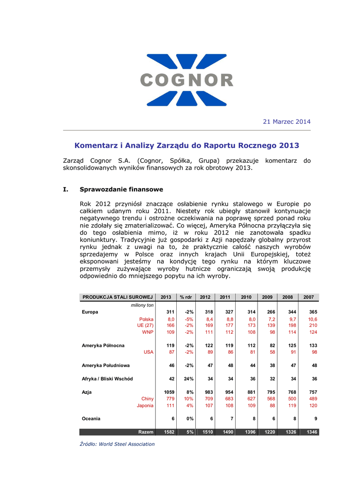 Komentarz i Analizy Zarządu do Raportu Rocznego 2013