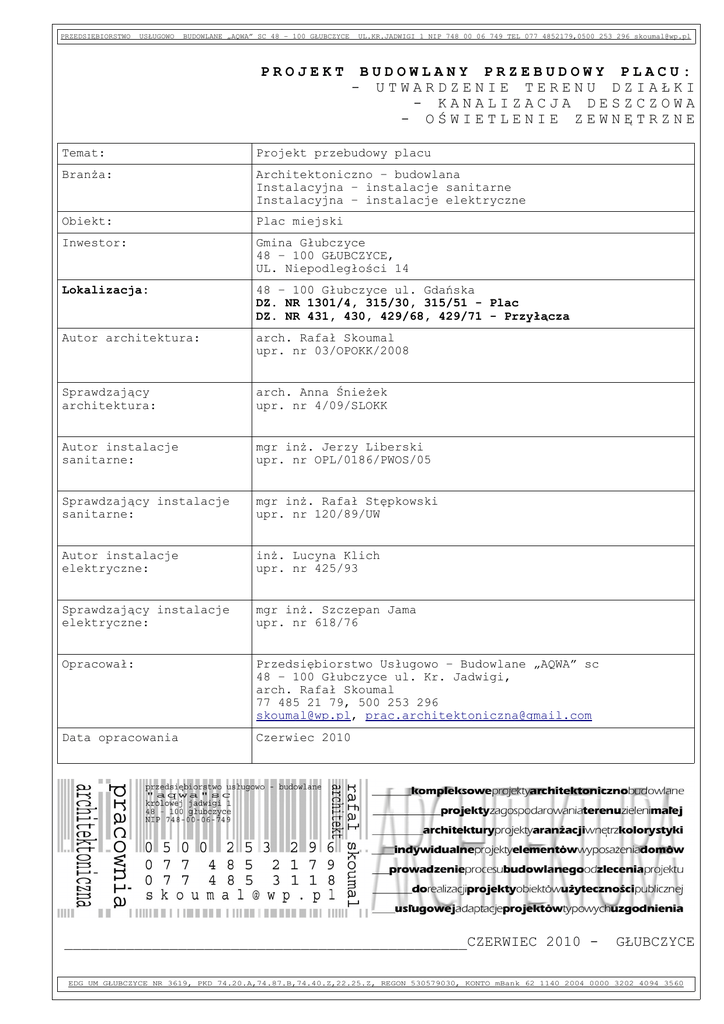 PROJEKT BUDOWLANY PRZEBUDOWY PLACU: