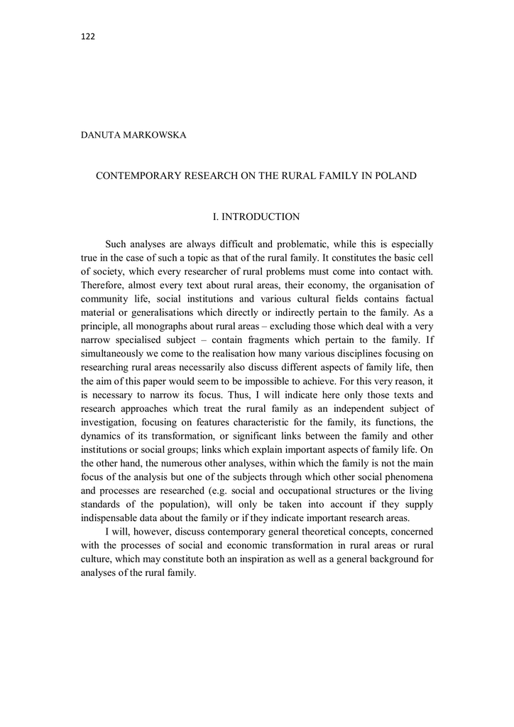 CONTEMPORARY RESEARCH ON THE RURAL FAMILY IN