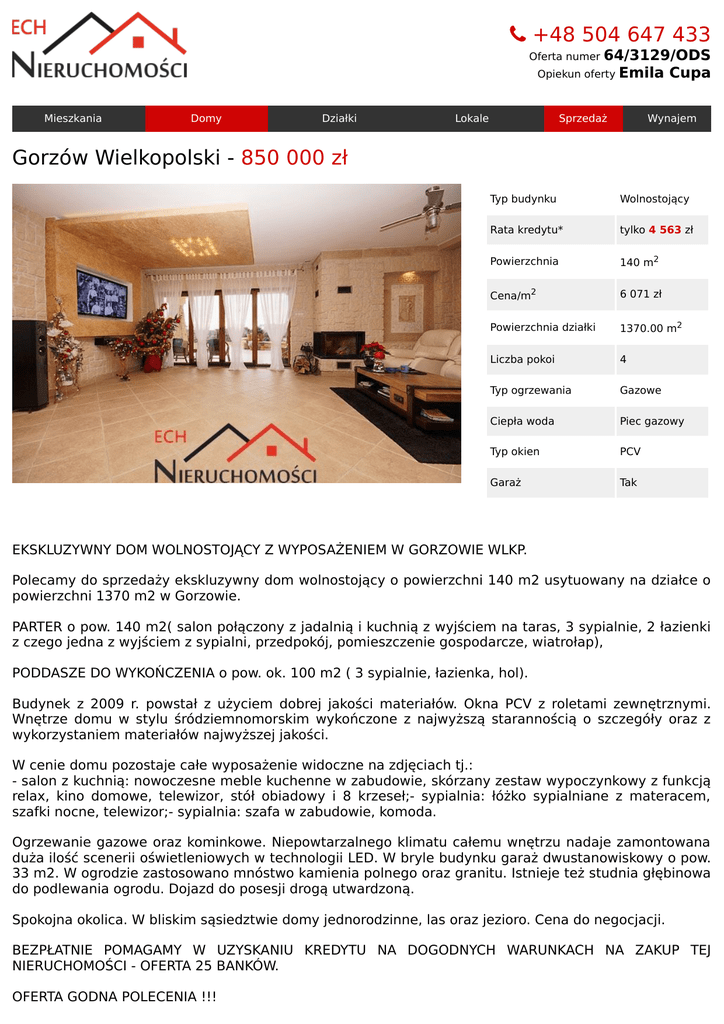 +48 504 647 433 Gorzów Wielkopolski - 850 000 zł