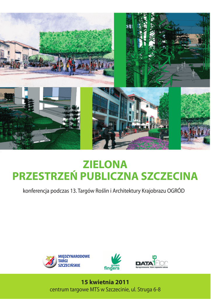 ZIELONA PRZESTRZEŃ PUBLICZNA SZCZECINA konferencja podczas 13. Targów Roślin i Architektury Krajobrazu OGRÓD 15 kwietnia 2011 centrum targowe MTS w Szczecinie, ul. Struga 6-8 program konferencji ZIELONA PRZESTRZEŃ PUBLICZNA SZCZECINA podczas 13. Targów Roślin i Architektury Krajobrazu 15 kwietnia 2011 centrum targowe MTS w Szczecinie, ul. Struga 6-8 część dla wykonawców ORGANIZATORZY 10:00 - 10:15 Rejestracja uczestników. Otwarcie konferencji. Drzewa w mieście w praktyce 10:15 - 10:35 Zabezpieczenia drzew w procesie inwestycyjnym - Karolina Muszyńska, Inspektor WGKIOŚ UM Szczecin 10:35 - 12:00 Cięcia drzew - wykorzystanie technik alpinistycznych w pielęgnacji drzew - pokazy praktyczne (na terenie targów) Darek Kobylczak - treeworker 12:00 - 12:15 przerwa kawowa Pola golfowe od projektu do eksploatacji 12:15 - 12:45 Prezentacja projektu pola golfowego pod Goleniowem - mgr inż. architekt krajobrazu Elżbieta Lewocka, absolwent ZUT 12:45 - 13:15 Pola golfowe - jako zieleń specjalnie projektowana i serwisowana na przykładzie kompleksu golfowego Modry Las Waldemar Ziemak, Klub Golfowy Modry Las Zielone technologie w mieście 13:15 - 14:00 Zielone dachy - budowa, problemy na istniejących inwestycjach - Paweł Kożuchowski, Laboratorium Zielonych Dachów 14:00 - 14:30 przerwa kawowa 14:30 - 15:00 Realizacja zielonych projektów w mieście - mgr inż. architekt krajobrazu Lidka Tokarska 15:00 - 15:30 Technologia Zielonej Ściany - mgr inż. Ryszard Łukowicz, Przedsiębiorstwo Handlowo-Usługowe „ADVISER” 15:30 - 16:00 Systemy nawadniające w terenach zieleni miejskiej na przykładzie Poznania - mgr inż. Ryszard Łukowicz, Przedsiębiorstwo Handlowo-Usługowe „ADVISER” Międzynarodowe Targi Szczecińskie PATRONAT MEDIALNY część dla architektów i architektów krajobrazu 10:00 - 10:15 Rejestracja uczestników. Otwarcie konferencji. Dziedzictwo architektury krajobrazu w Szczecinie 10:15 - 10:25 Prezentacja działalności Katedry Projektowania Krajobrazu, WKŚiR ZUT w Szczecinie - dr inż. arch. Magdalena Rzeszotarska-Pałka, Kierownik Katedry Projektowania Krajobrazu 10:25 - 10:45 Krajobraz kulturowy miasta Szczecina - prof. dr hab. inż. arch. Adam Szymski 10:50 - 11:10 System zieleni miejskiej Szczecina. Historia i teraźniejszość - dr inż. arch. Eliza Sochacka-Sutkowska Prezentacje prac dyplomowych nagrodzonych i wyróżnionych w konkursie Prezydenta Miasta Szczecina na najlepszą pracę dyplomową związaną z miastem 11:10 - 11:35 Koncepcja zagospodarowania parku poprzemysłowego z bulwarem nadrzecznym na wyspie Łasztownia - mgr inż. architekt krajobrazu Katarzyna Bartkiewicz, absolwent ZUT 11:35 - 12:00 W poszukiwaniu utraconych tradycji - przebudowa arterii nadodrzańskiej jako powrót Szczecina ku rzece - mgr inż. architekt krajobrazu Magdalena Łazarz - absolwent ZUT 12:00 - 12:15 przerwa kawowa Zarządzenie zielenią miejską i technologia jej projektowania 12:15 - 12:35 Szczecin - zielona metropolia nad wodą - Aleksandra Sołtykowska, Główny Specjalista WGKIOŚ UM Szczecin 12:35 - 12:55 Cmentarz Centralny - zielona przestrzeń miasta - Jadwiga Tumielewicz, Kierownik Wydziału Zieleni Miejskiej ZUK 12:55 - 13:15 Funkcja Ogrodnika Miejskiego - Magdalena Grycko, Zastępca Dyrektora ZUK - Ogrodnik Miejski 13:15 - 14:00 DATAflor - profesjonalne oprogramowanie dla architektów krajobrazu - Gerd Voss - dyrektor biura DATAflor w Berlinie 14:00 - 14:30 przerwa kawowa Prezentacje pracowni architektury krajobrazu 14:30 - 15:00 Współczesna architektura krajobrazu na terenach rekreacyjno - wypoczynkowych miasta - mgr inż. architekt krajobrazu Artur Bronisz, Bronisz Land Design 15:00 - 15:30 Zieleń na dachach i garażach podziemnych jako szansa na zwiększenie zielonej przestrzeni publicznej - mgr inż. architekt krajobrazu Dorota Nitecka-Frączyk, In and Out 15:30 - 16:00 Od pekińskiego Placu Tiananmen do sopockiego Monciaka - inż. Agnieszka Hubeny-Żukowska, Pracownia Sztuki Ogrodowej 16:00 - 16:30 Przetargi na zieleń - czy muszą kończyć się niską jakością zieleni publicznej - mgr inż. architekt krajobrazu Dorota Nitecka-Frączyk, In and Out Prezentacja Stowarzyszeń Branżowych 16:30 - 16:40 SAK - Stowarzyszenie Architektrury Krajobrazu - przedstawieciel organizacji 16:40 - 16:50 OSTO - Ogólnopolskie Stowarzyszenie Twórców Ogrodów - mgr inż. architekt krajobrazu Lidka Tokarska 16:50 - 17:00 SPAK - Stowarzyszenie Polskich Architektów Krajobrazu - dr inż. Marcin Kubus / mgr inż. arch. kraj. Krzysztof Kotwas 13. Targi Roślin i Architektury Krajobrazu www.mts.pl OGRÓD WSPÓŁPRACA 15-17 Zielony kwietnia 2011 design centrum targowe MTS w Szczecinie, ul. Struga 6-8 Konferencja ZIELONA PRZESTRZEŃ PUBLICZNA SZCZECINA podczas 13. Targów Roślin i Architektury Krajobrazu 15 kwietnia 2011 centrum targowe MTS w Szczecinie, ul. Struga 6-8 ZGŁOSZENIE UCZESTNICTWA W KONFERENCJI Imię …………………………………………………………………………………...…………………………………………...……….....…………….....……………………...………... Nazwisko …………………………………………………………………………………...…………………………………………..........….....……………………...………………… Nazwa firmy/instytcji …………………………………………………………………………………...……………………………….....……………………...….................... …………………………………………………………………………………………………………………………………………………………….....……………………...………............. Adres …………………………………………………………………………………...…………………………………………...……………….....………………