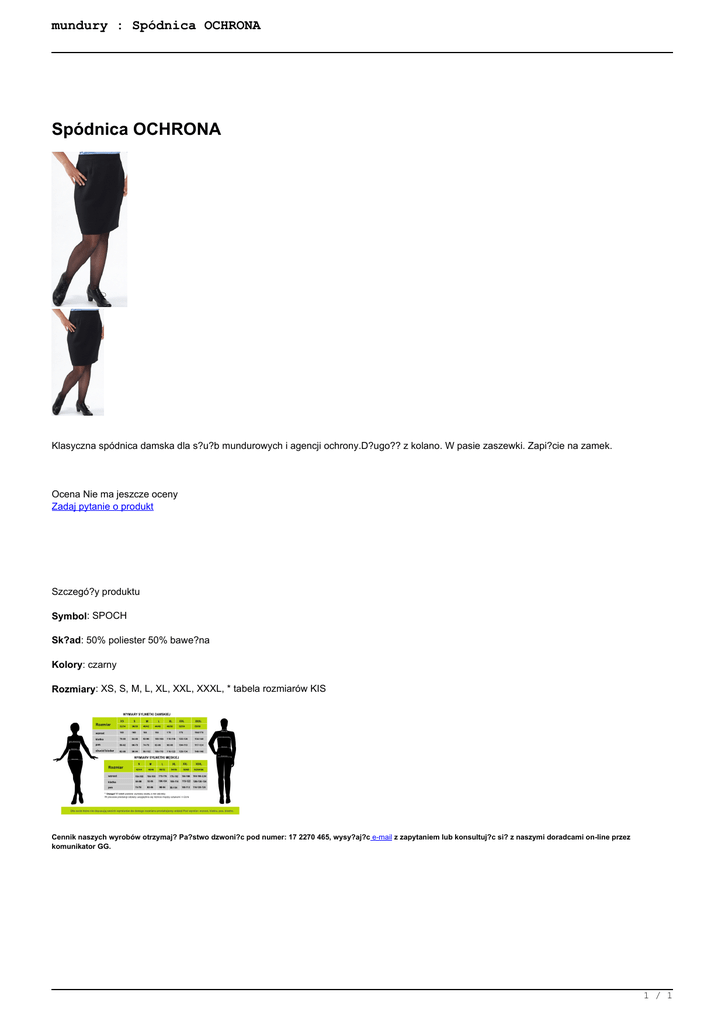 mundury : Spódnica OCHRONA Spódnica OCHRONA Klasyczna spódnica damska dla s?u?b mundurowych i agencji ochrony.D?ugo?? z kolano. W pasie zaszewki. Zapi?cie na zamek. Ocena Nie ma jeszcze oceny Zadaj pytanie o produkt Szczegó?y produktu Symbol: SPOCH Sk?ad: 50% poliester 50% bawe?na Kolory: czarny Rozmiary: XS, S, M, L, XL, XXL, XXXL, * tabela rozmiarów KIS Cennik naszych wyrobów otrzymaj? Pa?stwo dzwoni?c pod numer: 17 2270 465, wysy?aj?c e-mail z zapytaniem lub konsultuj?c si? z naszymi doradcami on-line przez komunikator GG. 1 / 1 Powered by TCPDF (www.tcpdf.org)