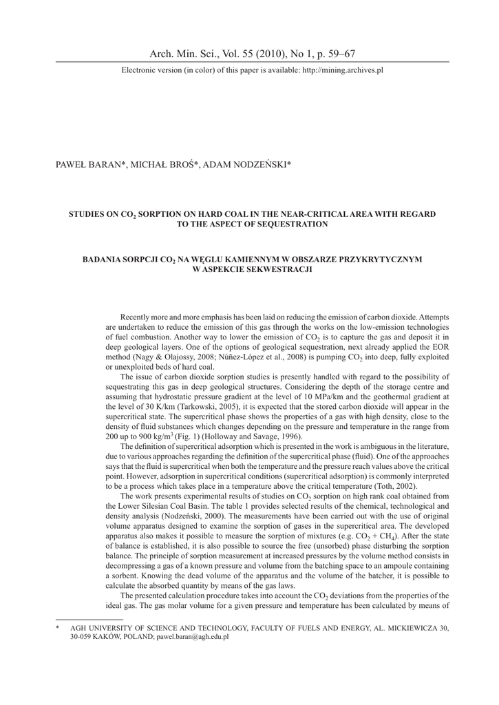 Arch. Min. Sci., Vol. 55 (2010), No 1, p. 59–67