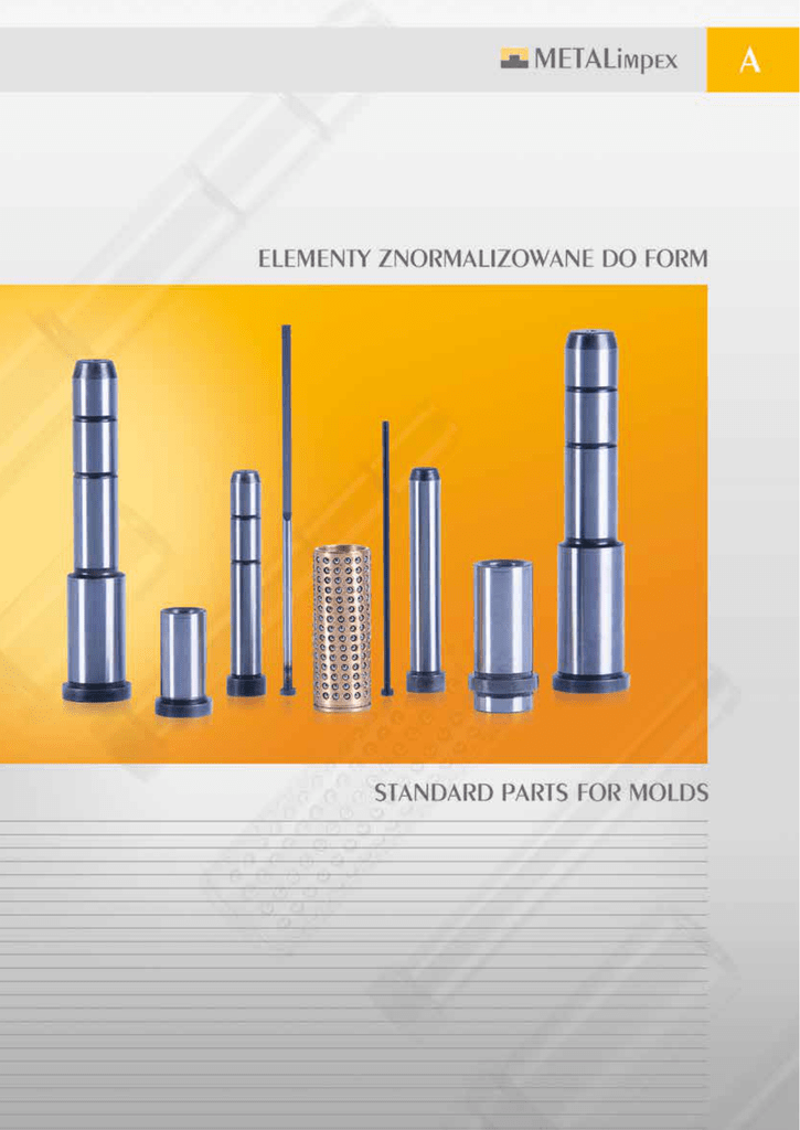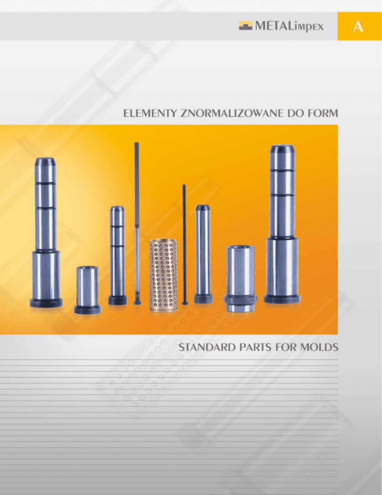 Spis produktów Table of contents Strona Page 6121, 6115, 6175, 6123, 6118, 612R Wypychacz z łbem cylindrycznym Ejector pin/core pin 6135, 6145, 6141 Wypychacz stopniowany Ejector pin with cylindrical head 6315, 6321, 6341 Wypychacz płaski Blade ejector pin 6615, 6621 Wypychacz tulejowy Ejector sleeve 6151 Wypychacz z łbem stożkowym Ejector pin LPC Słup prowadzący Guide pillar LPN Słup prowadzący Guide pillar LPU Słup skośny Angle pillar LPP Słup skośny Angle pillar LPF Słup skośny z średnicą pasowaną Angle pillar with stripper diameter LPK Słup skośny Angle pillar BTU Tuleja ustalająca Locating sleeve A/2 A/6 A/11 A/18 A/12 A/13 A/14 A/15 A/19 A/16 A/17 A/20 A/21 A/24 A/25 A/28 A/29 A/30 A/31 A/32 A/33 A/34 A/35 BSK, BBK, BBK2, BBK3, BBK4 Tuleja prowadząca Guide bush BSD, BBD Tuleja prowadząca Guide bush Strona Page A/36 A/38 A/46 A/47 A/37 A/39 BGD, TIB A/40 A/42 A/43 BGK, TKB A/41 A/44 A/45 Tuleja samosmarna Self-lubricating guide bush Tuleja samosmarna Self-lubricating guide bush BJ Koszyk kulkowy Ball bearing cage GBJ Tuleja prowadząca dla koszyka Guide bush for ball bearing cage LPJ, LPA Słup prowadzący Guide pillar LPS, LPB Słup prowadzący Guide pillar BSP Tuleja prowadząca Guide bush BSN Podkładka dla tulei BSP Washer for BSP bush B801 Tuleja prowadząca Guide bush B802, B812 Tuleja prowadząca Guide bush A/47 A/47 A/48 A/49 A/48 A/49 A/50 A/50 A/52 A/52 A/53 Spis produktów Table of contents Strona Page B803 Tuleja prowadząca Guide bush B808, B818 Słup prowadzący Guide pillar B852 Tuleja prowadząca, stal nierdzewna Guide bush, stainless steel B858 Słup prowadzący, stal nierdzewna Guide pillar, stainless steel CI Słup skośny (komplet) Angle pillars (set) CS Podstawa słupa Pillars base CP Słup skośny Angle pillar GBP Sworzeń płyty wypychaczy Pin ejection system HPL Słup boczny Side pillar SPB Tulejowy zabierak wlewka Sprue pullers bushing CPL Zamek boczny z powłoką TIN Side lock with TIN coat PL Zamek boczny Side lock A/53 A/54 A/55 A/55 A/56 A/57 A/57 A/58 A/59 A/59 A/60 A/60 Strona Page TL Zamek górny Top lock TBL Blok centrujący Locating block INT, INL Zespół centrujący Locating element WTC Tuleja centrująca Locating bush SBN, SBR, SBU Tuleja wtryskowa Sprue bushing CR, CRM Pierścień centrujący Locating ring CRS Półprodukt na pierścienie centrujące Semi-finished product for locating ring CD Pierścień dystansowy Distance disc ZD Element centrujący Locaitng disc ZK Element dociskowy Clamping disc BST Tuleja podporowa Support sleeve FT Nóżka Feet A/61 A/61 A/62 A/62 A/63 A/64 A/64 A/65 A/65 A/65 A/66 A/66 A/3 Spis produktów Table of contents Strona Page TB Tuleja centrująca, gwintowana Screwed locating sleeve SN Kołek oporowy Stop pin SD Pierścień ustalający Locating disc SK Element dociskowy Clamping sleeve EK Tuleja płyty wypychaczy Ejector plate bush ER Tuleja płyty wypychaczy Ejector plate bush EL Tuleja płyty wypychaczy Ejector plate bush KCA Pierścień centrujący Locating ring KCB Pierścień centrujący Locating ring KCC Pierścień centrujący Locating ring FSB Płytka samosmarna Wear plates self-lubricating QPB Obsada wypychacza skośnego Slide for angular expulsion A/4 A/67 A/67 A/67 A/68 A/68 A/69 A/69 A/70 A/70 A/71 A/72 A/72 A/73 Strona Page ZST Zatrzaski do form wtryskowych Slide-locks DA, DK Datownik - wersja standardowa i krótka Date stamps - standard and short version TGR-S2, TGS-S2, Wkładka standardowa z kalotką Standard inserts with vestige TGR-S1, TGS-S1 Wkładka standardowa z naddatkiem Standard inserts with allowance TGC, SGC Wkładka konturowa Conturable insert L5 ÷ L60 Płyty do form wtryskowych z otworami Mould plates with holes FLA, FLC Płyta izolacyjna Insulation plate FLB, FLD Płyta izolacyjna Insulation plate FLE Płyta izolacyjna Insulation plate FLF Płyta izolacyjna Insulation plate SLA, SLB Zawór powietrza Air valve CPD, CPM Korek stożkowy Conical plug A/74 A/75 A/77 A/81 A/84 A/85 A/86 A/87 A/88 A/93 A/94 A/95 A/96 A/97 A/100 A/101 A/98 A/99 A/102 A/103 A/104 A/104 A/105 A/106 Spis produktów Table of contents Strona Page CPU Zaślepka z uszczelką Plug with O-ring seal CPR Zaślepka rozprężna Sealing plug CPP Przegroda prosta Threaded flat baffle CPS Przegroda spiralna Threaded spiral baffle TL, TV, TU, TI, TVU, TS, TN, TNV, TNI Szybkozłącza, typ niemiecki Couplers, German standard TL, TV, TU, TI, TVU, TS, TN, TNV, TNI Szybkozłącza, typ amerykański Couplers, American standard TL, TV, TI, TN, TNV, TNI, TMC, TMN Szybkozłącza, typ francuski Couplers, French standard 2025, 2033, 2050, 42, 5011 5015, 5020 Szybkozłącza do ukadów chłodzenia Couplers for cooling systems 2M09 Multizłącze Multicouplers TF, TFB, TFC, TFD, TFI, TFM, TFL, TFI, TFV, TP Akcesoria do wody Accessories for couplings 5TM Kolektor Collectors ORN, ORV Oring Orings A/106 A/106 Strona Page CAP Licznik cykli Cycle counter AMBERSIL Preparaty chemiczne Chemical products A/135 A/136 A/144 A/107 A/107 A/110 A/111 A/112 A/113 A/114 A/115 A/116 A/119 A/120 A/126 A/127 A/131 A/132 A/133 A/134 A/5 Wypychacz z łbem cylindrycznym, hartowany - 6121... Ejector pin/core pin, hardened - 6121... wg ISO 6751, hartowany (DIN 1530, typ AH) to ISO 6751, hardened (DIN 1530, type AH) Opis/Description: Materiał/Material: Wypychacz z łbem cylindrycznym kutym na gorąco, trzpień hartowany, odpuszczany i szlifowany, g6. Szczególnie polecany przy odlewaniu ciśnieniowym i formach wtryskowych. Twardość/Hardness: Trzpień/Shaft: 60±2 HRC Łeb/Head: 45±5 HRC Cylindrical head hot forged with hardened shaft, tempered and fine ground finished to g6. Particulary suitable for pressure die cast and injection moulded tools d1 g6 0,8 0,9 1,0 1,1 1,2 1,3 1,4 1,5 1,6 1,7 1,8 1,9 2,0 2,1 2,2 2,3 2,4 2,5 2,6 2,7 2,8 2,9 3,0 3,1 3,2 3,3 3,4 3,5 3,6 3,7 3,8 3,9 4,0 4,1 4,2 4,3 ●A/6 d2 0 -0,2 2,5 3 k 0 -0,05 r +0,2 0 1,2 1,5 0,2 +2 0 l1 40 ● ● ● ● ● ● ● ● ● ● ● ● ● 50 ● ● ● ● ● ● ● 