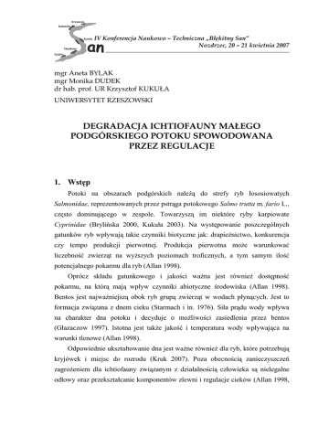 degradacja ichtiofauny małego podgórskiego potoku spowodowana