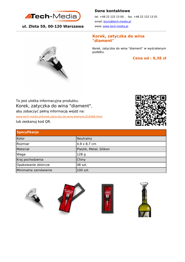Korek, zatyczka do wina "diament" - ulotka produktu - Tech