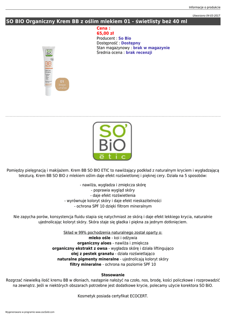 SO BIO Organiczny Krem BB z oślim mlekiem 01