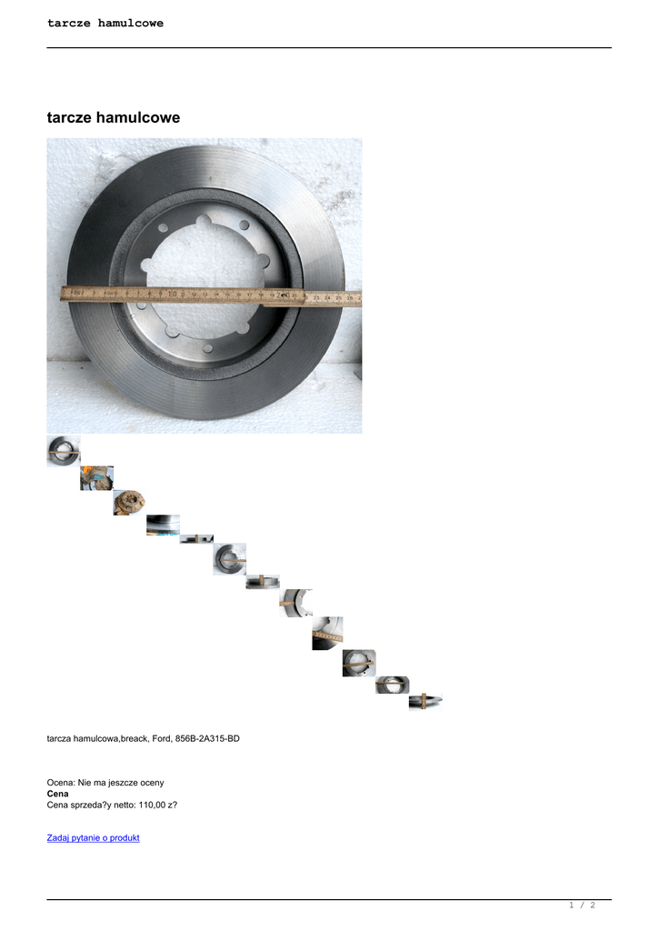 tarcze hamulcowe tarcze hamulcowe tarcza hamulcowa,breack, Ford, 856B-2A315-BD Ocena: Nie ma jeszcze oceny Cena Cena sprzeda?y netto: 110,00 z? Zadaj pytanie o produkt 1 / 2 tarcze hamulcowe Szczegó?y produktu tarcza hamulcowa,breack, Ford, 856B-2A315-BD, NSN 7LWT 2530991103076 stan: nowe 2 szt. 2 / 2 Powered by TCPDF (www.tcpdf.org)