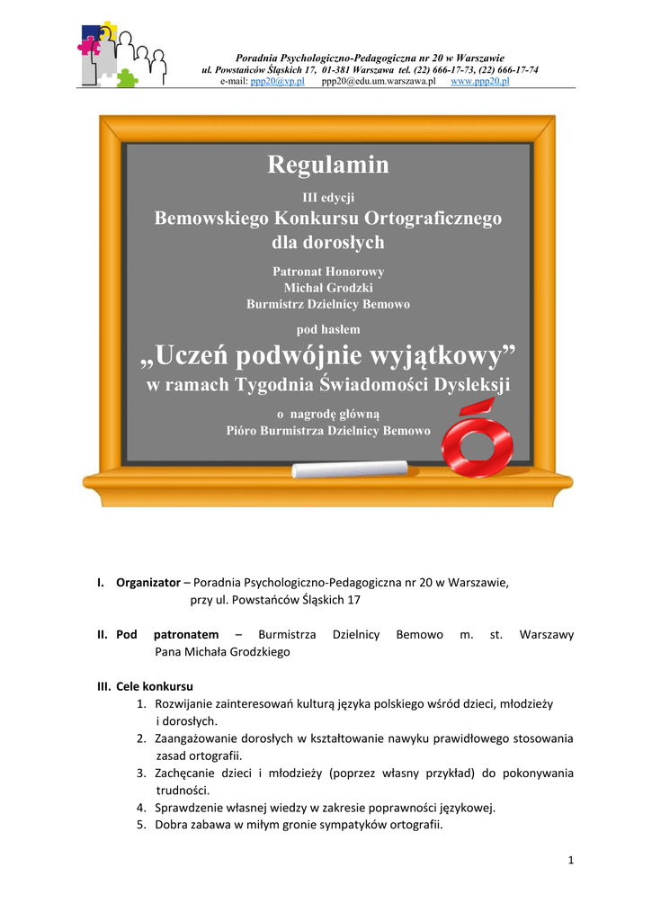 regulamin bemowskiego konkursu ortograficznego