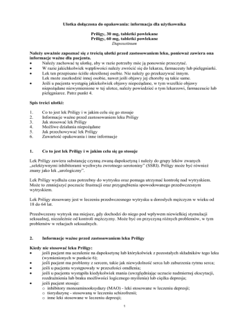 „selektywnymi inhibitorami wychwytu zwrotnego serotoniny” (SSRI). Priligy może być również