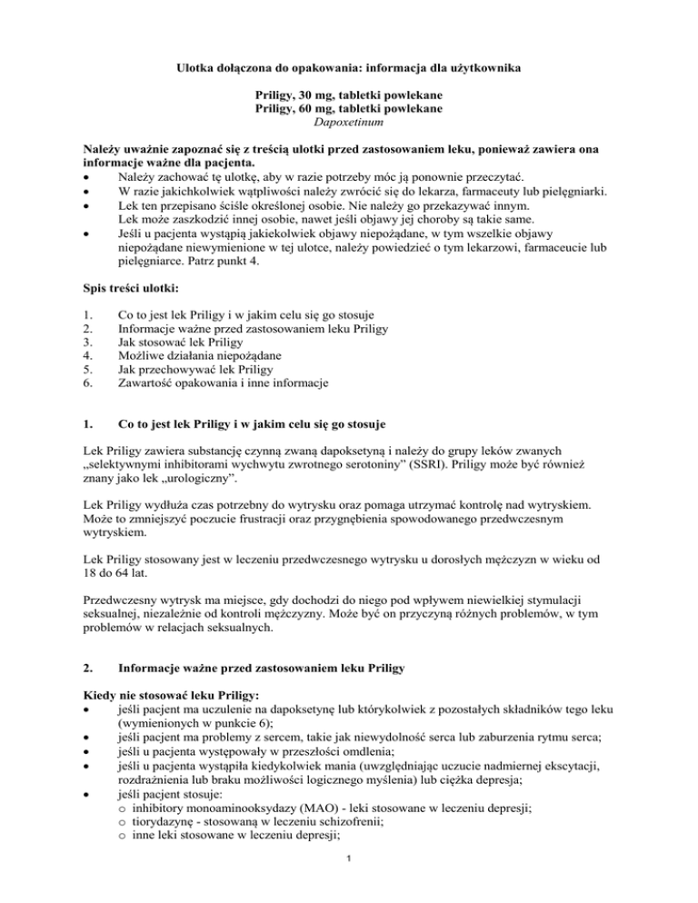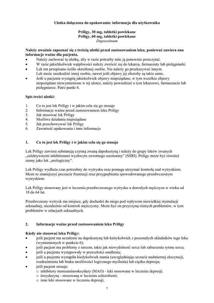Przed rozpoczęciem stosowania Priligy należy omówić to z lekarzem, farmaceutą lub pielęgniarką,
