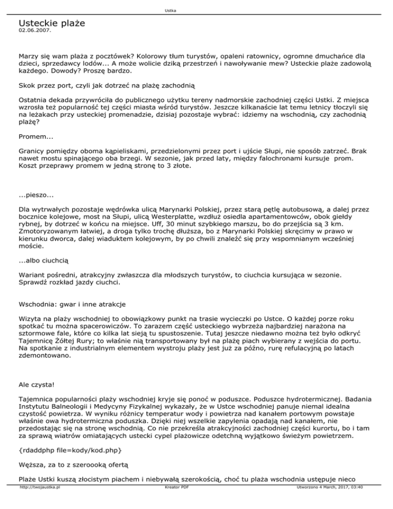 najbliższych plaży zabudowań. Plaża odpłaca się swym wiernym wielbicielom naturalnym pięknem.