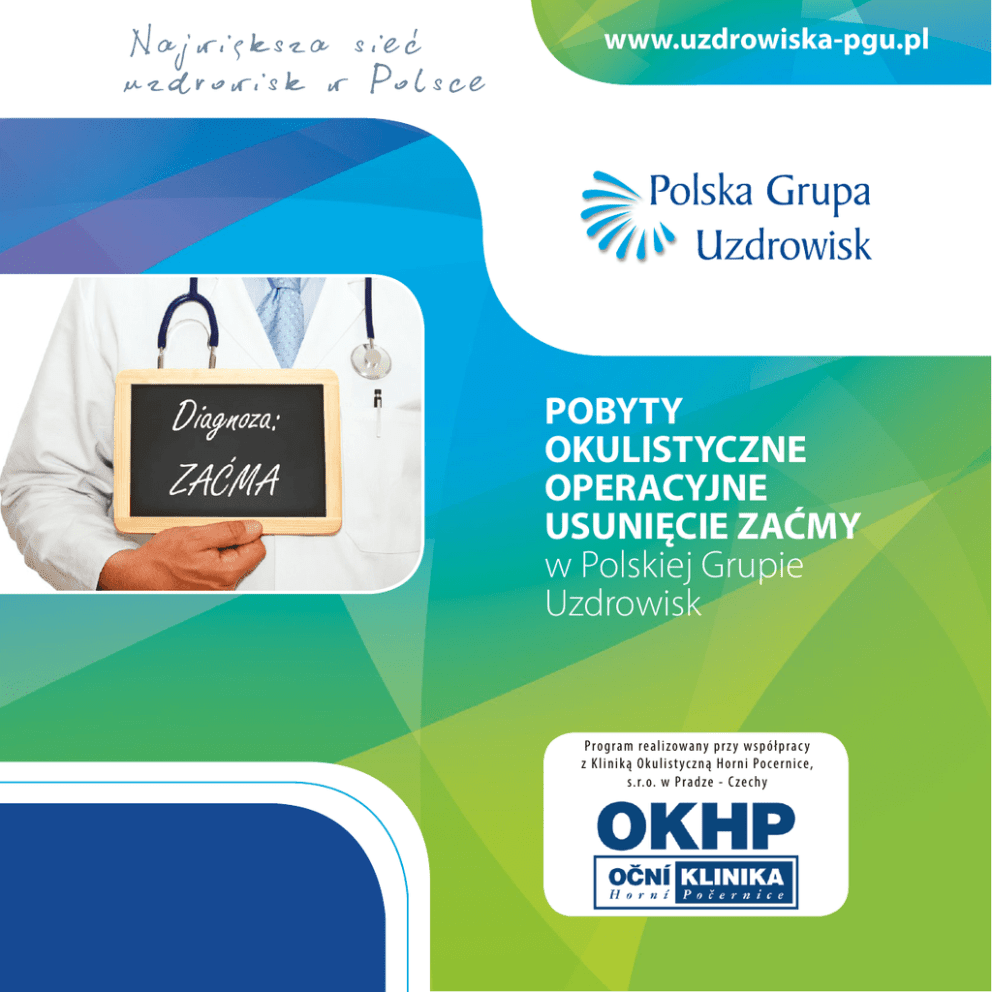 Największa sieć uzdrowisk w Polsce www.uzdrowiska-pgu.pl POBYTY OKULISTYCZNE OPERACYJNE USUNIĘCIE ZAĆMY w Polskiej Grupie Uzdrowisk Program real izowany pr z y w spół prac y z K l in ik ą O ku l ist yczn ą Horn i Pocern ice, s. r. o. w Pradze - C zechy Co to jest zaćma i dlaczego warto skorzystać z uzdrowiskowego pobytu okulistycznego - operacyjne usunięcie zaćmy ? Zaćma to schorzenie, które wywoływane jest zmętnieniem części lub całości soczewki oka. W efekcie następuje ograniczenie widzenia lub całkowita utrata wzroku. Jedynym skutecznym leczeniem zaćmy jest zabieg operacyjny, podczas którego wszczepia się sztuczną soczewkę wewnątrzgałkową - wszczepiona soczewka pozostaje w oku na stałe. Do kogo skierowany jest program leczenia ? Program oferowany przez Uzdrowiska PGU przeznaczony jest dla osób w każdym wieku z rozpoznaną zaćmą, zakwalifikowaną do operacji na podstawie badania okulistycznego przeprowadzonego w miejscu zamieszkania. Zabieg operacyjny odbywa się w Klinice w Pradze. Dodatkową wartością dla kuracjusza jest możliwość częściowej refundacji operacji zaćmy przez Narodowy Fundusz Zdrowia w ramach dyrektywy transgranicznej. Co ważne! Kiedy choroba przeszkadza w codziennych czynnościach lub pracy decyzja o wyjeździe do Uzdrowiska w celu wykonania zabiegu operacyjnego ułatwia szybszy powrót do zdrowia. Powody, dla których warto wybrać program: ▪▪ kompleksowość świadczonych usług, krótkie terminy oczekiwania na zabieg operacyjny ▪▪ transfer do kliniki i powrót po zabiegu pod opieką pielęgniarską ▪▪ nowoczesne sale operacyjne i wysokiej klasy aparatura medyczna ▪▪ pooperacyjna pielęgnacja oczu i opieka okulistyczna ▪▪ poprawa widzenia i stabilizacja ostrości ▪▪ bezpłatne okulary do czytania 2 www.uzdrowiska-pgu.pl Nie czekaj na dalsze pogorszenie wzroku i skorzystaj z UZDROWISKOWEGO POBYTU OKULISTYCZNEGO - OPERACYJNE USUNIĘCIE ZAĆMY W jaki sposób szybko przystąpić do programu ? Należy: ▪▪ zadzwonić i zarezerwować pobyt w wybranym uzdrowisku ▪▪ posiadać skierowanie na zabieg operacyjny zaćmy od lekarza okulisty ▪▪ zabrać ze sobą aktualne wyniki badań laboratoryjnych (morfologia krwi KO, chemiczna analiza moczu + osad, glukoza, mocznik, kreatynina) i diagnostycznych (badanie EKG) ▪▪ zakrapiać chore oko kroplami TOBRADEX (przez dwa dni przed planowanym zabiegiem) ▪▪ przyjechać na pobyt do uzdrowiska, podczas którego odbędzie się konsultacja okulistyczna Pobyty realizujące program: bez noclegu, 2-dniowe (1 nocleg), 3-dniowe (2noclegi), 8-dniowe (7 noclegów), 10-dniowe (9 noclegów) Cena pakietu: ▪▪ już od 3350 zł /os. Rekomendowane pobyty 10-dniowe (zapewniona opieka pooperacyjna oraz codzienne konsultacje okulistyczne) Harmonogram pobytu 10-dniowego: Oferta obejmuje: ▪▪ zakwaterowanie ▪▪ wyżywienie (od kolacji w dniu przyjazdu do śniadania w dniu wyjazdu) ▪▪ transfer do Kliniki i powrót pod opieką pielęgniarską ▪▪ codzienne badanie okulistyczne i całodobową opiekę pielęgniarską Informacje dodatkowe: podane ceny są cenami brutto i nie zawierają opłaty klimatycznej 1 Wstępne badanie okulistyczne w dniu przyjazdu (niedziela) 2 Badania laboratoryjne w pierwszym dniu pobytu (poniedziałek) 3 Konsultacja okulistyczna ocena badań laboratoryjnych wykonanych w uzdrowisku (wtorek) 4 Zabieg operacyjny wyjazd do Kliniki w Pradze i powrót w tym samym dniu po zakończonym zabiegu (środa) 5 Opieka medyczna pooperacyjna pielęgnacja oczu i codzienne badanie okulistyczne (czwartek - wtorek) 6 Badanie końcowe zalecenia, wypis do domu (środa) 3 Rezerwacja i informacja: INFOLINIA: 801 KURORT (801 587 678) Uzdrowiska Kłodzkie tel. Wielka Pieniawa: 74 86 80 217, Zdrowie: 74 86 80 209 Dział Sprzedaży: 74 86 80 371, 74 86 80 370 mail: [email protected] Uzdrowisko Cieplice tel. Długi Dom: 75 75 510 57, Edward: 75 75 510 56 Dział Sprzedaży: 75 75 33 143, 75 75 51 055 mail: [email protected] Uzdrowisko Świeradów tel. Hotel Zdrojowy SANUS 75 73 02 100, Dom Zdrojowy 75 78 20 500, Dział Sprzedaży: 75 78 20 600, 75 78 20 730 mail: [email protected] www.uzdrowisko-cieplice.pl www.uzdrowisko-swieradow.pl www.uzdrowiska-klodzkie.pl