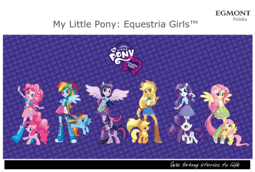 My Little Pony: Equestria Girls™ My Little Pony: Equestria Girls™: amerykańsko-kanadyjski film animowany. Wyprodukowany przez Hasbro Studios i DHX Media/Vancouver. Postawą fabuły jest serial animowany My Little Pony: Frienship is Magic, emitowany na kanale TV MiniMini+, codziennie, w paśmie przedi popołudniowym. Królestwo kucyków zostało pozbawione korony, która od zawsze była ważną częścią ich magicznego królestwa i pomagała je chronić. Twilight Sparkle wyrusza w podróż, aby odnaleźć złodzieja. Przechodzi na drugą stronę lustra i trafia do równoległej rzeczywistości, do świata ludzi, gdzie zmienia się w nastolatkę. Aby odzyskać fragment własnego świata, Twilight musi odnaleźć się w nowej sytuacji. Pomaga jej pięć dziewczyn, które do złudzenia przypominają jej przyjaciółki z królestwa Equestrii. Sposób na odzyskanie utraconego skarbu to zdobycie tytułu królowej balu w Canterlot High. Sunset Shimmer, rywalka Twilight, nie ułatwia jej tego zadania. Bohaterki: Twilight Sparkle: bystra; żądna wiedzy; szukająca odpowiedzi na każde pytanie. Rainbow Dash: zdecydowana; odważna; lojalna; wysportowana; uwielbia rywalizację. Applejack: prostolinijna; pracowita; kocha styl country. Pinkie Pie: wesoła organizatorka i uczestniczka wszelkich imprez; zaraża śmiechem. Fluttershy: wrażliwa; opiekuńcza; nieśmiała, ale zawsze służy pomocą. Rarity: zawsze elegancka; lubi przepych i interesuje się modą; projektuje własne kolekcje ubrań dla przyjaciółek. Understanding Brand DNA: • szkolna codzienność • Księżniczka Twilight w szkole • Ważne/istotne dziewczęce problemy • Wiodący temat przyjaźni i lojalności • Istota wzajemnej pomocy • Wejście do realnego świata uczniów i szkoły • Core target: dziewczynki 5-9+ • Pozycjonowanie: postacie Twilight i przyjaciółek pozwalają dziewczynkom zrozumieć świat przyjaźni, szkolnych realiów – rywalizacji i wzajemnej pomocy. My Little Pony wydanie specjalne: Equestria Girls™ 1/14 • Grupa docelowa: dziewczynki 5-9+ lat • Objętość: 24 strony • Format: 210x283 mm • Częstotliwość: kwartalnik; od marca 2014; • Cena: 9,99 PLN • Nakład: 30000 egz. • Dodatek: 1/14: brokatowe, miękkie naklejki 2/14: cztery pasemka włosów 3/14:tbc 4/14:tbc My Little Pony: Equestria Girls™: film & inne: • Grupa docelowa: dziewczynki 5-9+ lat • Film: I część emitowana na kanale teleTOON+ • Premiera: wrzesień 2013 • Premiera II części: jesień 2014 • Marzec 2014: 6 webisodes + 2 music videos (2-minutowe filmiki emitowane na youtube.com, stardoll.com oraz MLPEG.com) Dział książki. Plan wydawniczy Powieść: Through the mirror Format: tbc, 240 str. oprawa miękka Powieść na podstawie filmu Cena: 24,99 Data premiery: kwiecień/maj 2014 Dział książki. Plan wydawniczy Sekretnik Equestria Girls Format: tbc, 240 str. tbc, oprawa miękka Rodzaj pamiętnika/sekretnika z fragmentami cytatów powieści dla fanek do wymyślania własnych historii, komentowania wydarzeń z życia itp. Cena: 19,99 Data premiery: wrzesień 2014 Dział książki. Plan wydawniczy Equestria. Księga mody Format: 215x270tbc, 64 str. tbc, oprawa miękka, na spirali Elementy dodatkowe: naklejki, szablony, patterny Książka z postaciami bohaterek, dla których czytelniczka ma zaprojektować stroje, używając elementów dodatkowych z książki. Cena: 29,99 Data premiery: wrzesień 2014 Materiał poglądowy Dział książki. Plan wydawniczy Equestria. Księga projektowania Format: 215x270, 80 str. tbc, oprawa miękka na spirali Elementy dodatkowe: naklejki, szablony, patterny Książka z ilustracjami ubrań i akcesoriów dla fanek, które chcą zaprojektować własne stroje z postaciami, kolorystyką i motywami Equestrii Cena: 29,99 Data premiery: październik 2014 Materiał poglądowy Dział książki. Plan wydawniczy Equestria. Szkicownik projektantki Format: 205x295 tbc z rączką, oprawa miękka Elementy dodatkowe: naklejki, patterny Książka z informacjami o bohaterkach i postaciami, dla których czytelniczka może zaprojektować alternatywne stroje, naklejać na wybrane miejsca naklejki i patterny Cena: 14,99 Data premiery: wrzesień 2014 Materiał poglądowy Dział książki. Plan wydawniczy Equestria. Album przyjaciółek Format: 168x220, 96 str. oprawa miękka Książka dla fanek zawierająca quizy, testy i miejsca na wpisy o sobie, swoim hobby, ulubionych aktywnościach itp. Cena: 14,99 Data premiery: październik 2014 Materiał poglądowy Dział książki. Plan wydawniczy Equestria. Zaprojektuj mój świat Format:205x295, 24 str. oprawa miękka Książka dla fanek, które chcą same zaprojektować świat Equestrii, dorysowując szczegóły tła, fragmenty ilustracji, kreować własne patterny i rysunki Cena: 7,99 Data premiery: październik 2014 Materiał poglądowy MLP Equestria Girls 2013 Rekordowa widownia podczas premiery filmu 14.09 Zwycięzca w konkursie „Kreskówka na życzenie” Premierę filmu obejrzało 100 tys. osób w grupie 4+ NPD 2013 Grudzień (CM) MLP EG Lalka podst. # 1 w kategorii lalki # 2 na całym rynku 3 x MLP EG w Top 5 (Lalki CM) NPD YTD 52 MLP EG Lalka podst. (4 m-ce) MH Lalka podst. (12 m-cy) 54,1 tys. szt. 53,6 tys. szt. Strategia Marketingowa Cel: Rozwój linii MLPEG poprzez nawiązanie do filmu oraz zaangażowanie starszych dziewczynek w markę My Little Pony 1.Utrzymanie szumu wokół marki poprzez dostarczenie dziewczynkom narzędzi do rozpowszechniania informacji w Internecie (piosenka, teledyski, biosy) 2. Rozwijanie mocnego „contentu”, który pozwoli dziewczynkom lepiej poznać historię Equestria Girls. 3. Mocne ekspozycje w sklepach. 1H 2014 Linia MLP Equestria Girls A3994 MLPEG Lalka podstawowa SRP: 69.99 PLN A3995 MLPEG Dwupak SRP: 159.99 PLN A3995 MLPEG Lalka z akcesoriami SRP: 99.99 PLN A6683 MLPEG Piosenkarka SRP: 129.99 PLN A3996 MLPEG Lalka z kucykiem SRP: 114.99 PLN A6684 MLPEG Trixie SRP: 129.99 PLN My Little Pony Equest