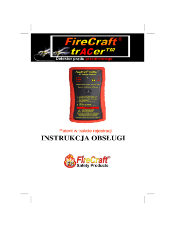 Detektor prądu przemiennego Patent w trakcie rejestracji INSTRUKCJA OBSŁUGI FireCraft® trACer™ Instrukcja obsługi SPIS TREŚCI ROZDZIAŁ STRONA 1. Symbole ostrzegawcze.................................4 2. Opis detektora trACer™ ………....................5 3. Charakterystyka trACer™ .............................5 4. Opis funkcji trACer™ …………………….......11 5. Obsługa trACer™ ........................................12 6. Typowe zastosowania.................................13 7. Wymiana baterii………................................13 8. Konserwacja i serwis...................................14 9. Rozwiązywanie problemów..........................14 10. Wymiana części. …......................................15 11. Ograniczona gwarancja…............................15 12. Dane techniczne...........................................16 . Nr trACer-1-OM, wersja 01/13 Strona 2 FireCraft® trACer™ Sensor / Antena Instrukcja obsługi Numer seryjny z tyłu, pod czerwoną osłoną obudowy Podświetlana dioda LED Głośnik Przedział bateryjny z tyłu, pod czerwoną osłoną obudowy Form No. trACer-1-OM, Rev 1/13 Włącznik ON/OFF z boku Osłona obudowy Page 3 FireCraft® trACer™ 1. OSTRZEŻENIEA Instrukcja obsługi I UWAGA Przed uruchomieniem FireCraft® trACer™, należy dokładnie przeczytać niniejszą instrukcję. NALEŻY ZACHOWAĆ SZCZEGÓLNĄ OSTROŻNOŚĆ w przypadku przebywania w pobliżu miejsc, gdzie może występować wysokie napięcie. Zarówno podczas jak i po sprawdzeniu obecności napięcia za pomocą FireCraft® trACer™ użytkownik winien zawsze zachowywać najwyższą ostrożność. Brak ostrożności oraz nieprzestrzeganie zasad obsługi FireCraft® trACer™ przedstawionych w niniejszej instrukcji obsługi może doprowadzić do poważnych obrażeń lub śmierci. Niebezpieczeństwo z powodu awarii sieci zasilania. W przypadku wykrycia zwarcia na obwodzie sieci zasilania lub w przypadku awarii obwodu urządzenia będą próbować przywrócić napięcie. Automatyczne przywrócenie zasilania jest sterowane komputerowo przez zakład energetyczny. Chociaż nie ma stałych zasad dotyczących odstępów i częstości tych automatycznych prób, kończą się one zazwyczaj po trzy- lub czterokrotnej próbie w ciągu minuty od wystąpienia awarii. W przypadku zlokalizowania zerwanego przewodu, należy upewnić się, czy zakład energetyczny odłączył go od obwodu głównego. W przypadku zerwanych przewodów należy obchodzić się tak, jakby były pod napięciem. Podłączenie i uziemienie obwodu zasilającego oraz wszelkie prace przy takim obwodzie może wykonywać wyłącznie wykwalifikowany personel lokalnego zakładu energetycznego. Detektor FireCraft® trACer™ nie wykrywa ani nie ostrzega o zagrożeniach powodowanych przez prąd stały stosowany w akumulatorach samochodowych lub szynach metra. Detektor FireCraft® trACer™ także nie ostrzega przed osłoniętym napięciem prądu zmiennego (znajdującym się w elektrycznych przewodach metalowych). Podczas kontroli za pomocą FireCraft® trACer™ w miejscach gdzie mogą znajdować się przewody elektryczne pod napięciem należy zachować NAJWYŻSZĄ OSTROŻNOŚĆ. W takich sytuacjach należy zachować ostrożność, aby uniknąć przypadkowego kontaktu ze źródłem prądu, w trakcie dotykania innego źródła. (Dodatkowe informacje - patrz rozdział 5, Obsługa) Form No. trACer-1-OM, Rev 01/13 Page 4 FireCraft® trACer™ Instrukcja obsługi 2. OPIS DETEKTORA trACer™ Dziękujemy za zakup najlepszego z dostępnych na rynku urządzeń do lokalizacji nieekranowego napięcia prądu zmiennego. FireCraft® trACer™ to bezdotykowy urządzenie cyfrowe, które wykrywa napięcie liniowe prądu zmiennego o wartości 40 do 70 Hz i informuje o jego obecności za pomocą sygnału wizualnego i dźwiękowego. Sygnały ostrzegawcze, zarówno wizualny jak i dźwiękowy, narastają w miarę zbliżania sie do źródła napięcia. Wykrywanie odbywa się kierunkowo, dzięki czemu użytkownik może szybko i dokładnie wykryć źródło prądu przemiennego. Przed użyciem FireCraft® trACer™należy dobrze zapoznać się z jego działaniem. Przed uruchomieniem detektora w miejscu pod napięciem prosimy dobrze zapoznać się z poniższym rozdziałem Charakterystyka detektora trACer™. . 3. CHARAKTERYSTYKA DETEKTORA trACer™ Przed pierwszym użyciem trACer™ Przed użyciem FireCraft® trACer™ do wykrywania napięcia, należy dobrzy zapoznać się z tym urządzeniem, jego cechami i zachowaniem prądu zmiennego. WAŻNE: Przed zastosowaniem urządzenia przeczytaj poniższe informacje i wykonaj podane ćwiczenia. Auto test urządzenia trACer™ Włącz urządzenie przesuwając do przodu włącznik znajdujący się po jego prawej stronie. Następnie wykonany zostanie 5-sekundowy auto test, sygnalizowany przez za pomocą sygnałów tonowych oraz podświetlany czerwony wskaźnik. Po zakończeniu tekstu detektor trACer™ jest gotowy do użycia. Kierunkowa sygnalizacja FireCraft® trACer™ lokalizuje źródło napięcia. Działa jak latarka wykrywająca napięcie. Skieruj trACer™w kierunku znanego źródła prądu. Powoli przesuń urządzenie bliżej tego źródła prądu. Zwróć uwagę jak można zlokalizować źródło prądu przemiennego. Form No. trACer-1-OM, Rev 1/13 Page 5 FireCraft® trACer™ Instrukcja obsługi Wykonywanie pomiaru Detektor trACer™ należy trzymać w ręce wyciągniętej przed siebie, na długość ramienia, równolegle do podłoża, z anteną oraz instrukcjami skierowanymi do góry, aby widoczna była czerwona lampka wskaźnika. Podczas ustawiania detektora w różnych pozycjach w celu wykrycia źródła napięcia, urządzenie należy trzymać w ręce wyciągniętej przed siebie. .Użytkowanie w pomieszczeniach Zakres wykrywania prądu przemiennego i czułość urządzenia są względne i zależą od typu źródła prądu przemiennego i jego ekranowania, izolacji, montażu, uszko